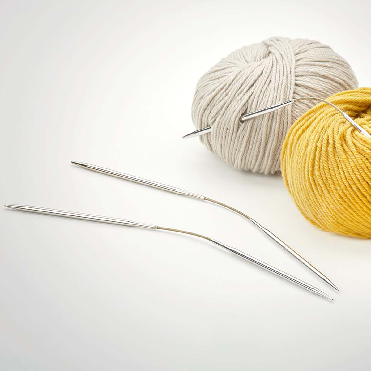 Пользующие огромной популярностью addiCraSyTrio из металла теперь с удлиненными кончиками. Спицы удобно держать в руках и вязать большое количество петель, подходят для вязания носков, шапок, рукавов и детской одежды. Длина спицы около 10,5 см (один наконечник стандартной формы Basic, другой наконечник удлиненный и заостренный Lace), золотистая леска длиной ок. 5 см. Спицы доступны в размерах 4-8 мм.