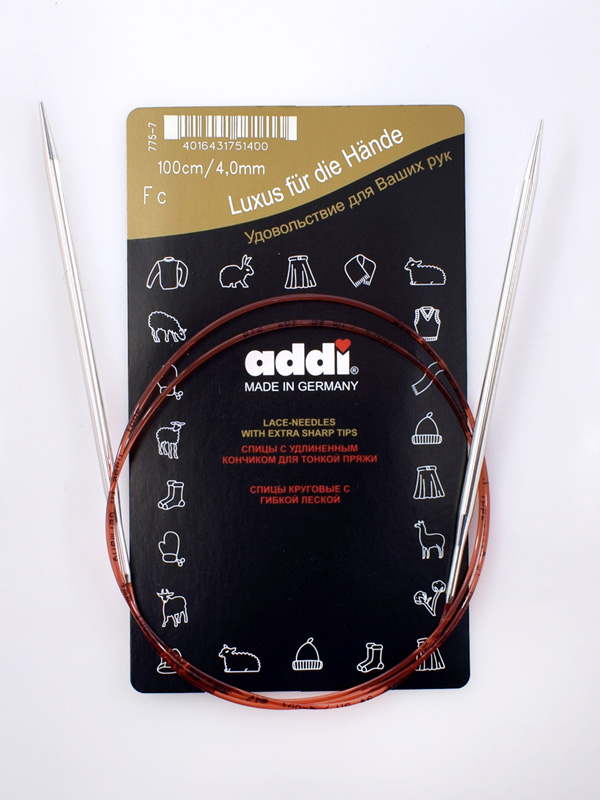 У этих спиц на 3 мм длиннее кончики, чем а артикула 775-7. Кончики закругленные, но тем не менее острые. Идеально подходят для тонкой пряжи. Оличительная черта этих спиц - красная леска addi. Никелированная поверхность делает спицы очень «быстрыми». Спица полая, очень лёгкая. Это качество особенно удобно у толстых спиц. Легкий вес бережет руки. Очень тонкие и гладкие переходы от спицы к леске. Пряжа лучше скользит. Самый большой выбор размеров в мире. Мягкая и гибкая леска с размером и надписью „Made in Germany“. Каждая спица проходит 25 трудоемких производственных процессов. Контроль качества гарантирует, что только лучшие спицы попадут на рынок.