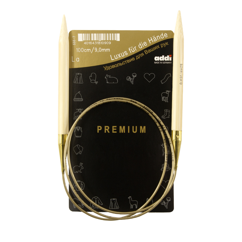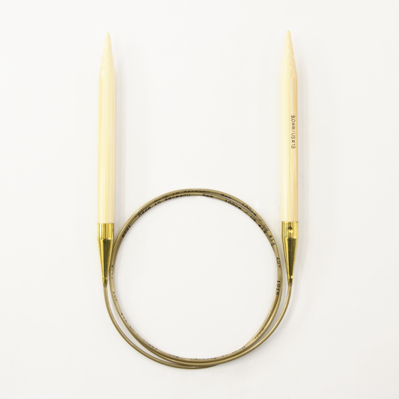 Спицы из высококачественного бамбука, который растет на юге Японии, где очень холодно. Он растет очень медленно, и поэтому очень прочный. Именно такой бамбук используется для спиц addi, самый прочный из всех сортов бамбука в мире. Спицы не стучат при вязке. На знаменитой золотой леске есть все необходимая информация. Леска очень гибкая и позволяет мягко скользить спицам между петлями. Переход от спицы к леске очень деликатен. При производстве каждая спица проходит дополнительный тактильный контроль. Поверхность спицы обрабатывается специальным, высокотехнологичным японским воском, который закрывает поры бамбука и делает поверхность абсолютно гладкой. Спицы addi Bambus идеальны для людей с аллергией на металл и их едва слышно при вязании