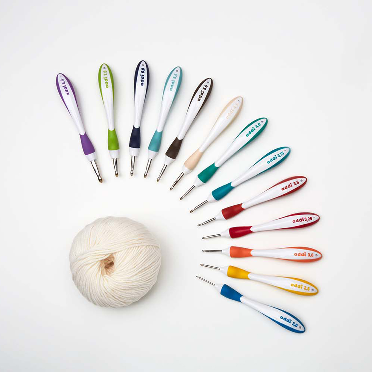 Вязание крючком в Европе увлекает все больше рукодельниц, чем вязание на спицах. Эргономика крючка Swing позволяет делать короткие движения и не давит на руку. Это расслабляет ладонь, руку и плечо – для людей с артрозом крючок идеален. Якорный аргумент продаж для крючков Swing: разница в цене по отношение к обычным крючкам – это инвестиция в ваше здоровье. Форма и цветовая гамма соответствуют моде, что особенно привлекает молодых вязальщиков и вязальщиц. Более старшему поколению разница в цвете поможет легче отличит толщину крючка. Важно для магазинов: Крючки можно дать в руку, протестировать и дать повязать. Упаковка крючков addiSwing можно закрыть обратно.Крючки Swing толщиной 7 мм и 8 мм – это замечательные осенние крючки. Идеально походят для толстой и фетровой пряжи, которая без проблем скользит по металлическому наконечнику этих крючков. Аудитория этих крючков делится 50% на 50%, потому что кому-то они не нравятся, а кто-то без них уже не представляет себе вязание крючком.