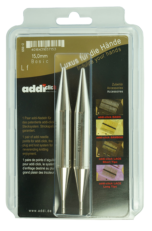 Известная на весь мир и единственная в своем роде запатентованная система смены спиц, которая во много превосходит спицы конкурентов. addiСlick не надо ввинчивать, не надо ключика. Они просто и удобно защелкиваются не оставляя абсолютно никакого зазора между спицей и леской. 80% людей вяжут правой рукой туже, чем левой, а система addiClick исправляет это при работе с двумя различными толщинами спиц. Результат: улучшенная структура полотна. Многие клиенты желают собирать свой набор addiClick сами, поэтому производитель выпускает спицы это серии отдельно. Эти спицы подходят к набору addiClick BASIC.