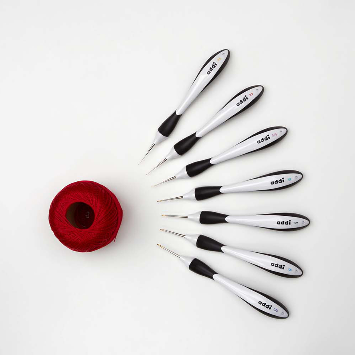 Компания производит полный ассортимент вязальных спиц (круговые, прямые, чулочные), крючков для вязания, а также аксессуаров, таких как счетчики рядов и маркеры петель. Особенно популярны их системы сменных спиц Addi Click.