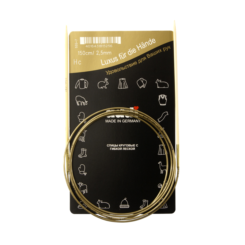 Спицы из высококачественного бамбука, который растет на юге Японии, где очень холодно. Он растет очень медленно, и поэтому очень прочный. Именно такой бамбук используется для спиц addi, самый прочный из всех сортов бамбука в мире. Спицы не стучат при вязке. На знаменитой золотой леске есть все необходимая информация. Леска очень гибкая и позволяет мягко скользить спицам между петлями. Переход от спицы к леске очень деликатен. При производстве каждая спица проходит дополнительный тактильный контроль. Поверхность спицы обрабатывается специальным, высокотехнологичным японским воском, который закрывает поры бамбука и делает поверхность абсолютно гладкой. Спицы addi Bambus идеальны для людей с аллергией на металл и их едва слышно при вязании