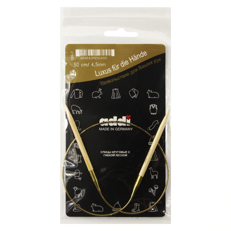 —Спицы, круговые, бамбук addiNature BAMBOO №4,5, 50 см. Арт 555-7/4.5-50