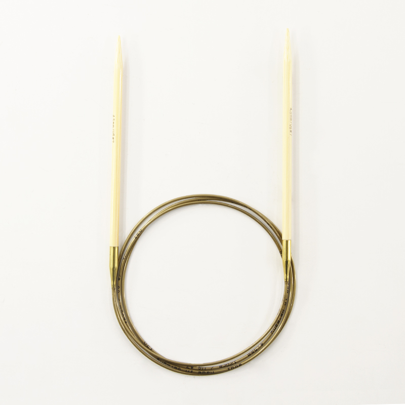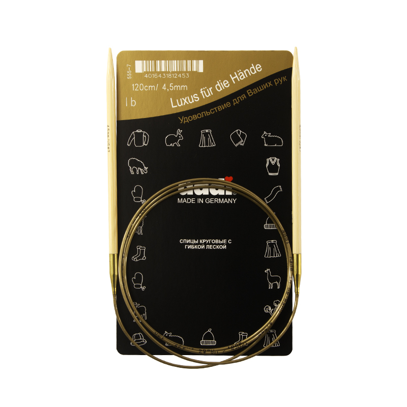 Спицы из высококачественного бамбука, который растет на юге Японии, где очень холодно. Он растет очень медленно, и поэтому очень прочный. Именно такой бамбук используется для спиц addi, самый прочный из всех сортов бамбука в мире. Спицы не стучат при вязке. На знаменитой золотой леске есть все необходимая информация. Леска очень гибкая и позволяет мягко скользить спицам между петлями. Переход от спицы к леске очень деликатен. При производстве каждая спица проходит дополнительный тактильный контроль. Поверхность спицы обрабатывается специальным, высокотехнологичным японским воском, который закрывает поры бамбука и делает поверхность абсолютно гладкой. Спицы addi Bambus идеальны для людей с аллергией на металл и их едва слышно при вязании