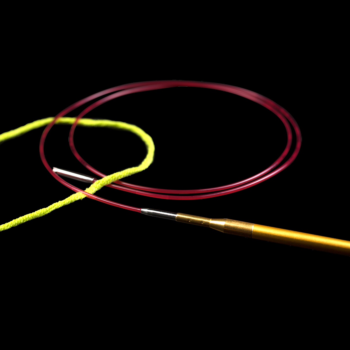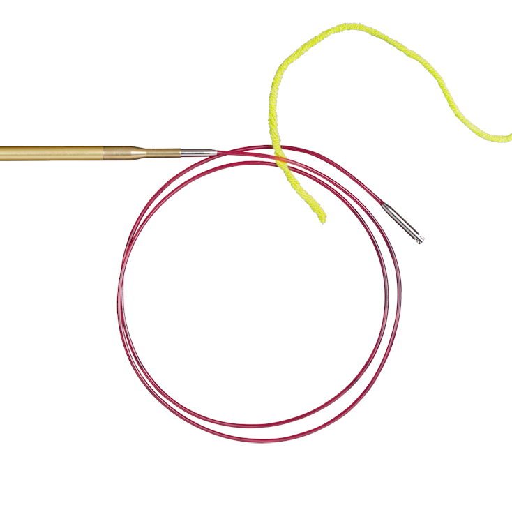 Лески addiSOS позволяют маркировать и закреплять ряды петель при выполнении сложных узоров, а также при необходимости распустить часть связанного полотна. Для этого в леске есть специальные отвертия, куда продевается нить.
