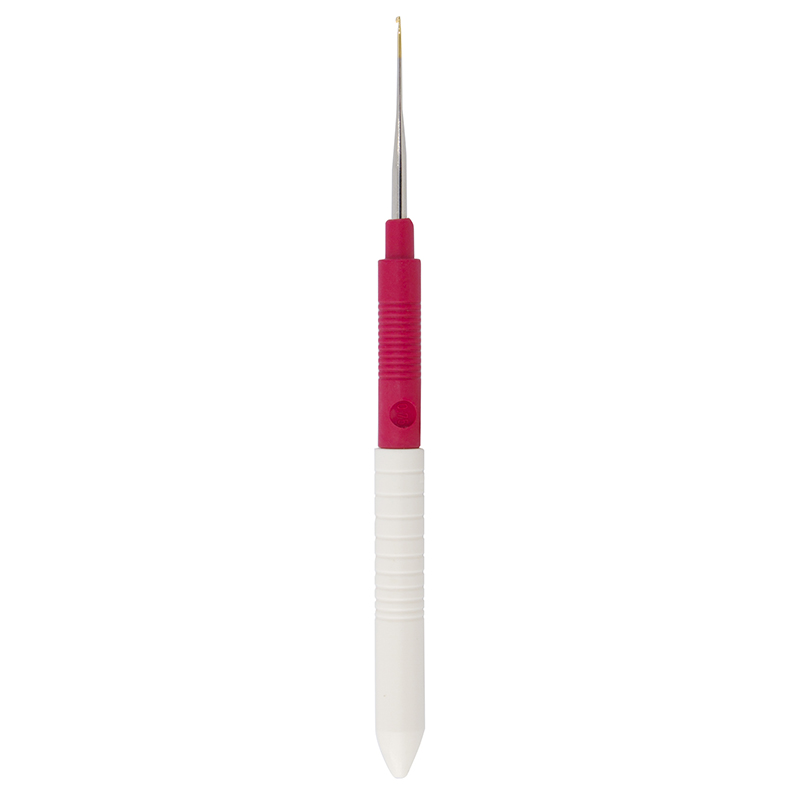 Крючок не острый, не царапает пальцы, довольно легко проникает в петли предыдущего ряда, что очень важно для скорости и качества вязания. Усиленная и удлиненная ручка расслабляет руку. Так как многие любят вязать летом, была разработана специальная рифленая ручка. При вязании рука меньше потеет, так как воздух проникает в щели между крючком и ладонью, кожа руки лучше дышит. Артикул 113-7 идеально подходит для различных крючковых техник вязания. Размеры от 0,5 мм до 1,75 мм, выполненные из высококачественного пластика. Для детей или начинающих эти крючки идеальны из-за своей невысокой стоимости.