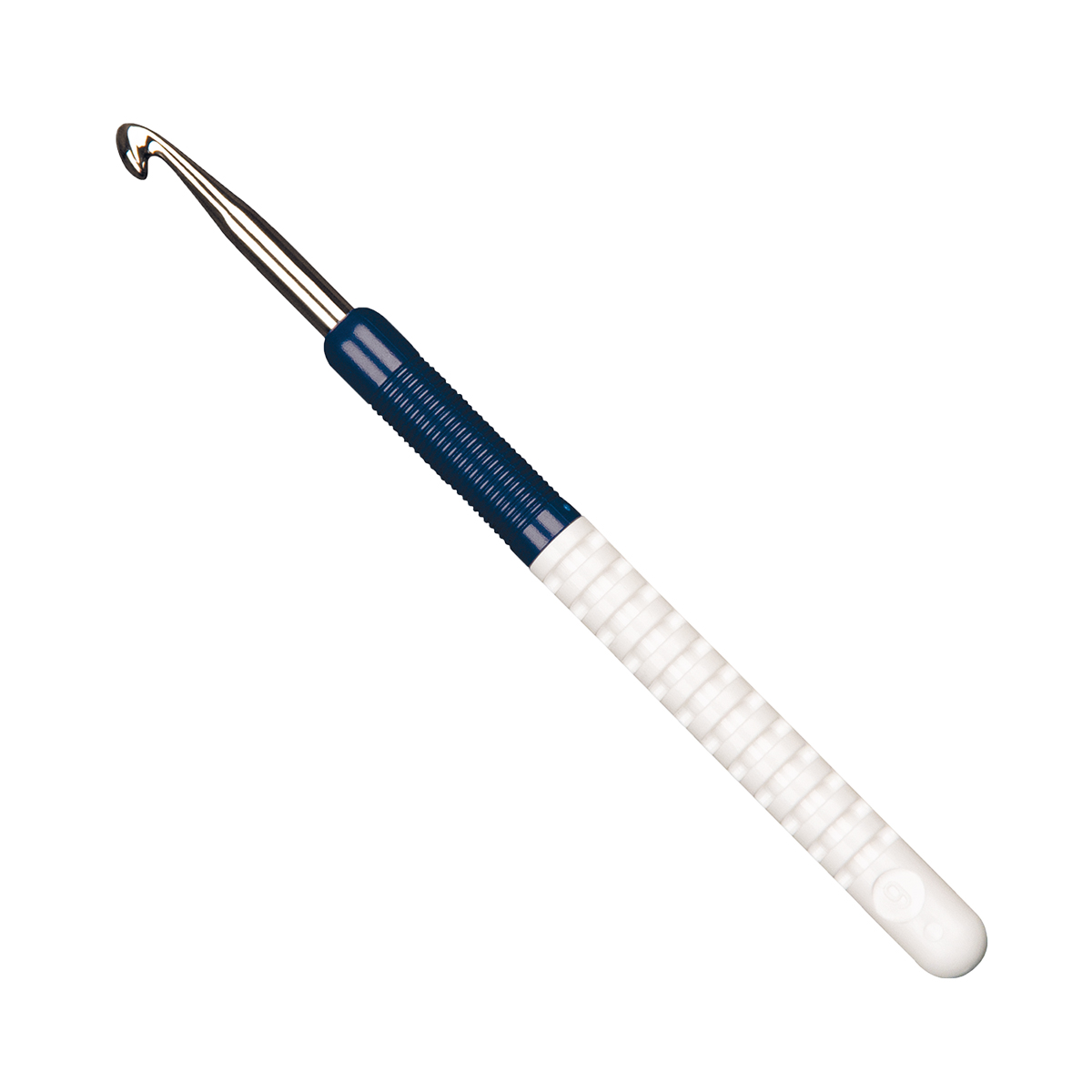 Это классика. Цвет ручки означает толщину крючка – очень удобно для потребителей. Номер крючка нанесен на поверхность прессом и остается на вечно. Усиленная и удлиненная ручка расслабляет руку. Так как многие любят вязать летом, была разработана специальная рифленая ручка. При вязании рука меньше потеет, так как воздух проникает в щели между крючком и ладонью, кожа руки лучше дышит. Артикул 148-7 идеально подходит для различных крючковых техник вязания. Размеры от 2 мм до 6 мм, выполненные из высококачественного пластика. Для детей или начинающих эти крючки идеальны из-за своей невысокой стоимости.