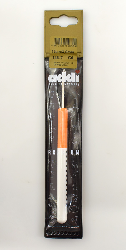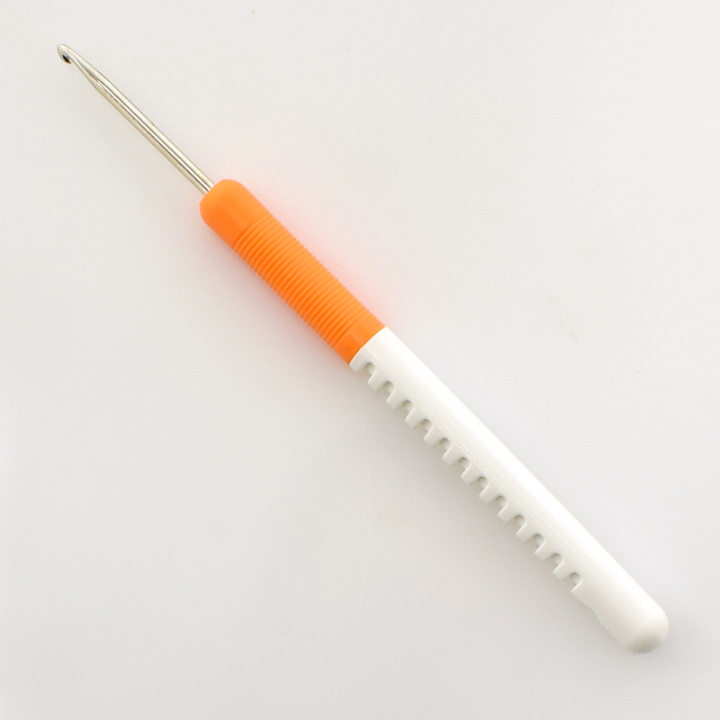 Это классика. Цвет ручки означает толщину крючка – очень удобно для потребителей. Номер крючка нанесен на поверхность прессом и остается на вечно. Усиленная и удлиненная ручка расслабляет руку. Так как многие любят вязать летом, была разработана специальная рифленая ручка. При вязании рука меньше потеет, так как воздух проникает в щели между крючком и ладонью, кожа руки лучше дышит. Артикул 148-7 идеально подходит для различных крючковых техник вязания. Размеры от 2 мм до 6 мм, выполненные из высококачественного пластика. Для детей или начинающих эти крючки идеальны из-за своей невысокой стоимости.