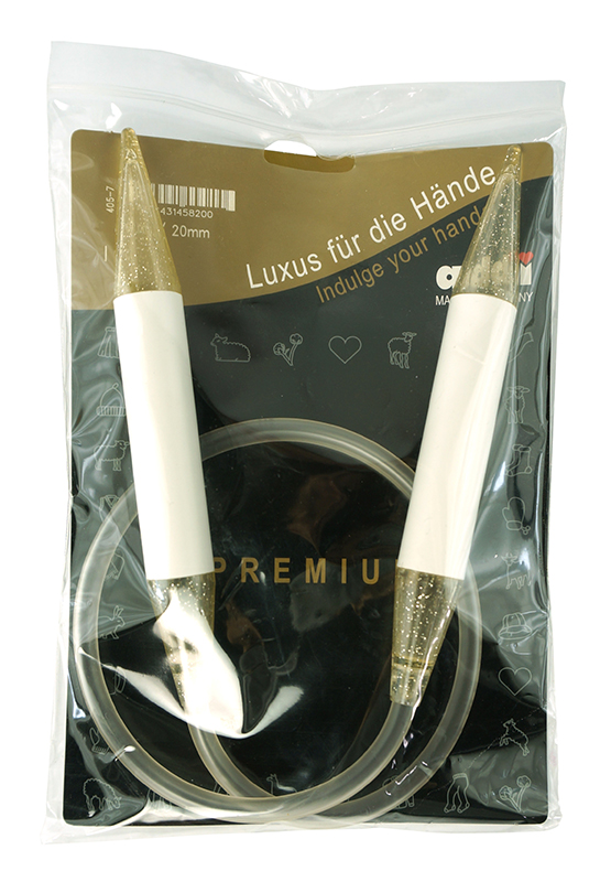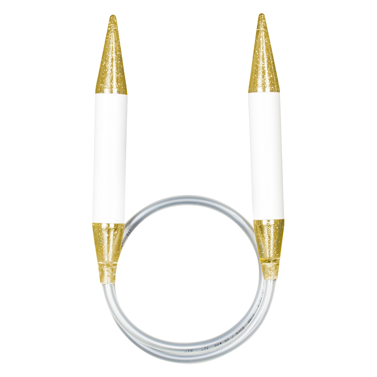 Пластиковые спицы из высококачественного сырья с золотыми блестками в виде шампанского. Улучшенная поверхность, которая дает дополнительное скольжение пряжи при вязании. Кончики спиц закругленные. Спицы скреплены гибким и прочным пластиковым шнуром. Особенность этих спиц заключается в том, что при больших толщинах типа №20 и №25 пластик дает необходимую для рук легкость.