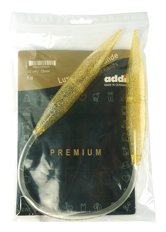 Пластиковые спицы из высококачественного сырья с золотыми блестками в виде шампанского. Улучшенная поверхность, которая дает дополнительное скольжение пряжи при вязании. Кончики спиц закругленные. Спицы скреплены гибким и прочным пластиковым шнуром. Особенность этих спиц заключается в том, что при больших толщинах типа №20 и №25 пластик дает необходимую для рук легкость.