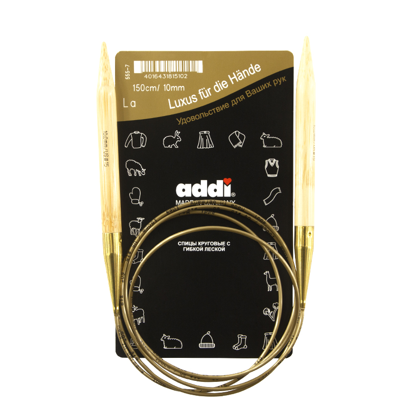 Спицы из высококачественного бамбука, который растет на юге Японии, где очень холодно. Он растет очень медленно, и поэтому очень прочный. Именно такой бамбук используется для спиц addi, самый прочный из всех сортов бамбука в мире. Спицы не стучат при вязке. На знаменитой золотой леске есть все необходимая информация. Леска очень гибкая и позволяет мягко скользить спицам между петлями. Переход от спицы к леске очень деликатен. При производстве каждая спица проходит дополнительный тактильный контроль. Поверхность спицы обрабатывается специальным, высокотехнологичным японским воском, который закрывает поры бамбука и делает поверхность абсолютно гладкой. Спицы addi Bambus идеальны для людей с аллергией на металл и их едва слышно при вязании