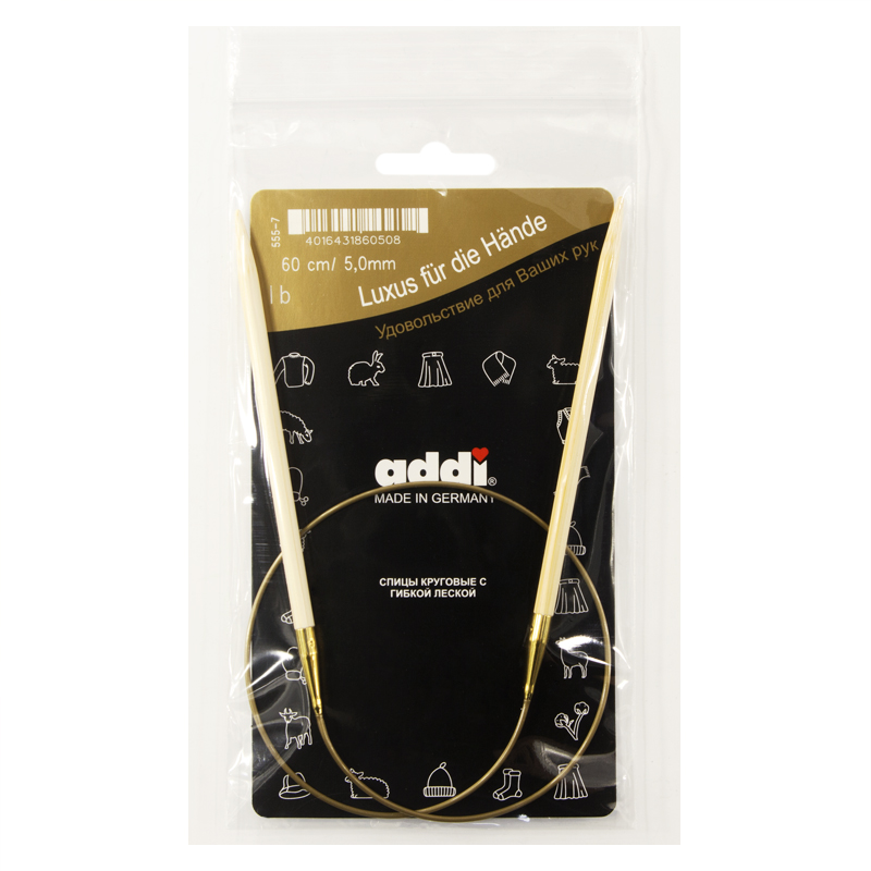 —Спицы, круговые, бамбук addiNature BAMBOO №5, 60 см. Арт 555-7/5-60