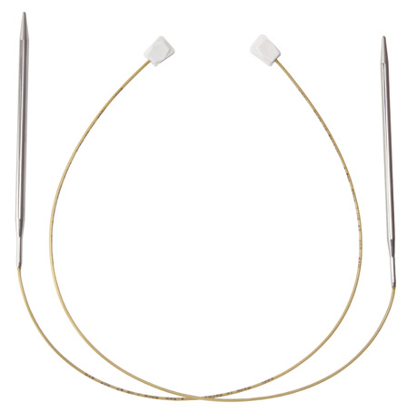 Спицы никелированные на золотистой леске с фиксаторами от ADDI - великолепная альтернатива длинным прямым спицам, когда последние торчат в разные стороны при вязке. Достаточно длинная леска позволяет вязать широкое полотно. Фиксаторы из пластика не позволят полотну соскользнуть со спиц. Преимущества спиц на леске с фиксаторами фирмы ADDI: 1. идеальный переход пряжи со спицы на леску 2. глянцевые, идеально гладкие спицы 3. максимально облегченные материалы 4. размер и длина спиц указаны на леске, легко читаются, не стираются, не зацепляют нить 5. высококачественная гибкая леска, при работе не закручивается. 6. спицы Премиум-класса, произведены и упакованы в Германии. Производитель рекомендует: если леска на сухом воздухе потеряла гибкость – подержите леску несколько минут в теплой воде и вязание снова станет комфортным Аналог прямых спиц. Гибкость лески позволяет распределить вес изделия при вязании. Облегчает вязание больших, тяжелых вещей.