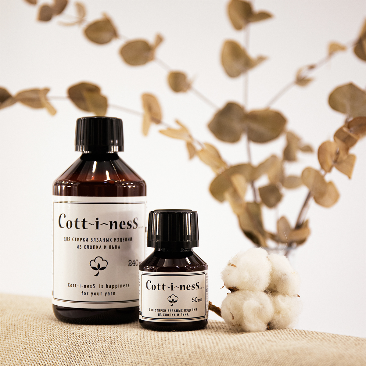 Хлопок - самое выносливое волокно! И потому самое попуярное в одежде. Он мягкий и приятен для кожи, хорошо впитывает влагу и выдерживает высокие температуры. Вязаные изделия из хлопка и льна чаще стирают. Чтобы не пересушить волокна и сохранить мягкость изделия, стирайте средством «Cott-i-ness».