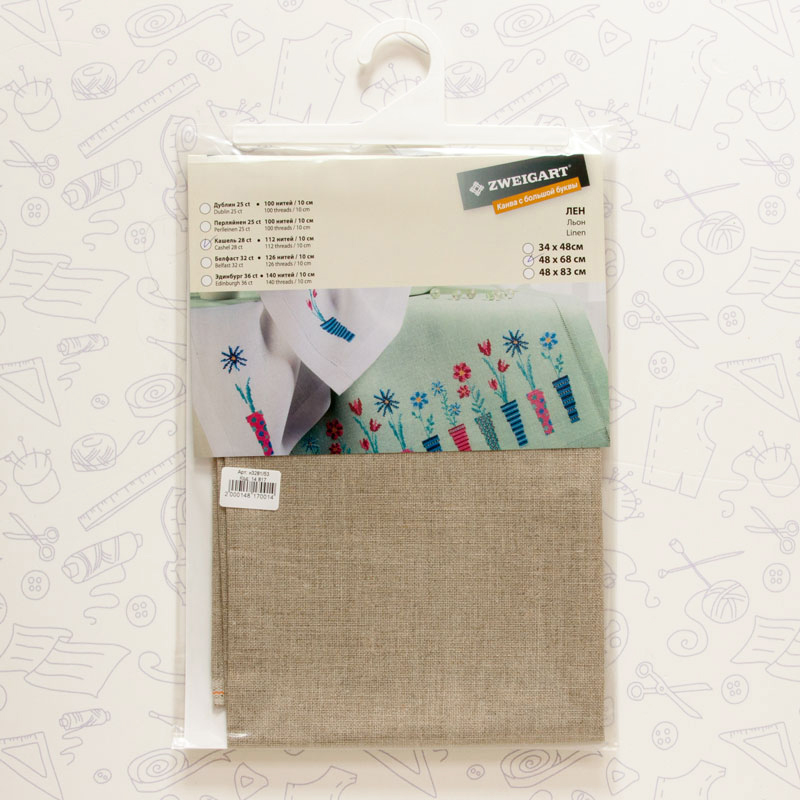 Лён - высококачественный и популярный материал, гладкая ткань, прохладная на ощупь, с благородной натуральной структурой. Именно эти качества сделали лён известным во всем мире. Данная группа тканей хорошо подходит для дизайнов, где остается много незашитого фона. Работа, выполненная на льне, выглядит, как произведение искусства. Нити полотна неравномерной толщины, что и отличает лен от иных вышивальных тканей. Льняные ткани намного мягче, чем Aida. Без пялец вышивать не рекомендуется. В компании GELA.ru существует услуга индивидуальной нарезки любого метража от рулона. Стоимость услуги 250 руб. на артикул.