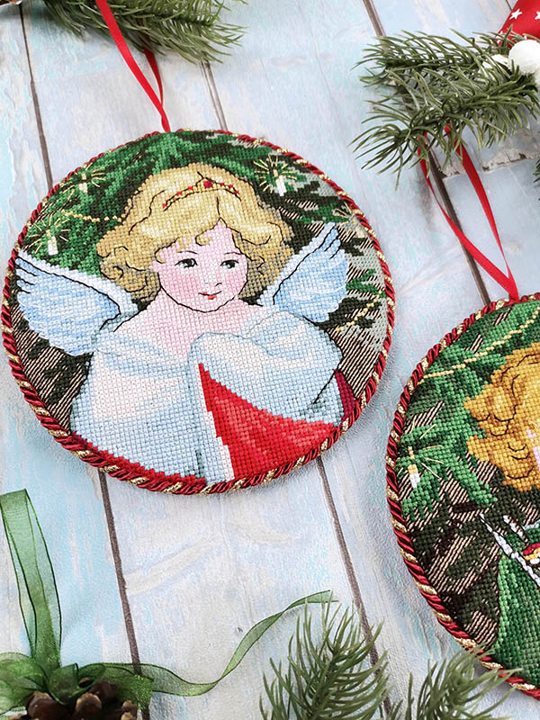 канва Aida 18 ct бежевая, канва Aida 14 ct красная, мулине Finca 24 цв., игла, инструкция, бисер MillHill, тесьма, схема комбинированная