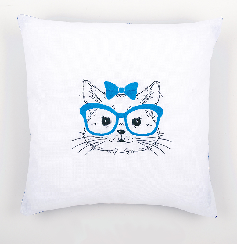 страмин с нанесенным цветным рисунком 18 стежков на 10 см 100% хлопок, нити для вышивания 100% акрил, игла, инструкция, задник на молнии