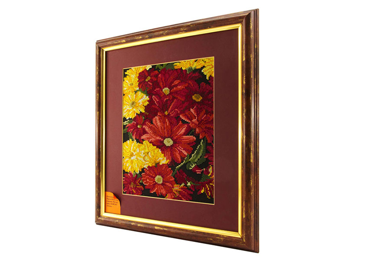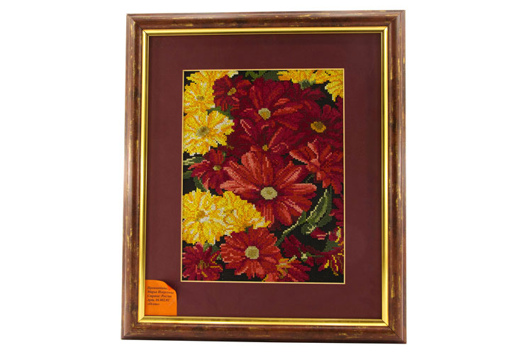 Готовая вышитая картина, оформленная в багет с паспарту. При вышивании использовались только высококачественные материалы.