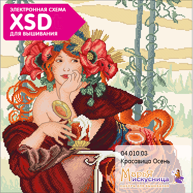 —Набор для вышивания "Красавица Осень" по рисунку А. Муха. Арт 04.010.03
