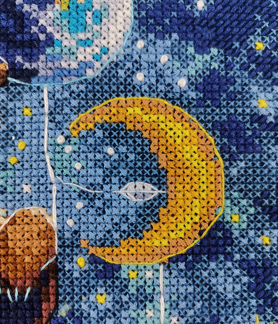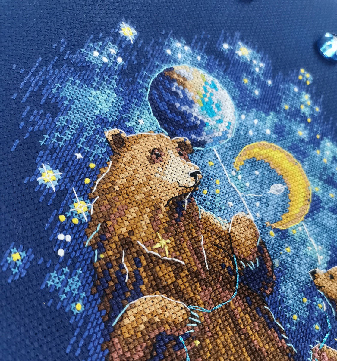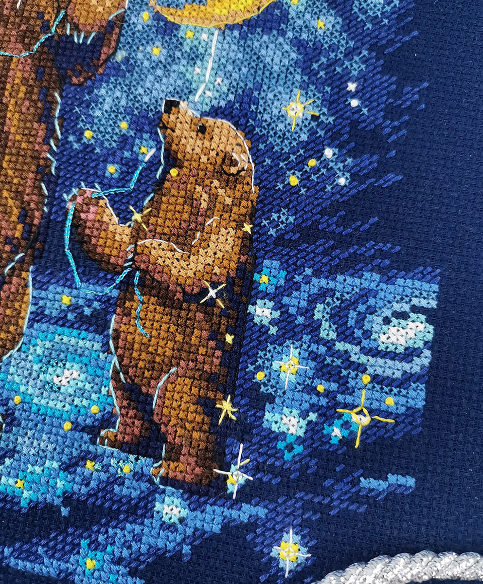 Канва Aida 14 ct темно-синяя, мулине Finca 25 цв., игла, инструкция, схема комбинированная