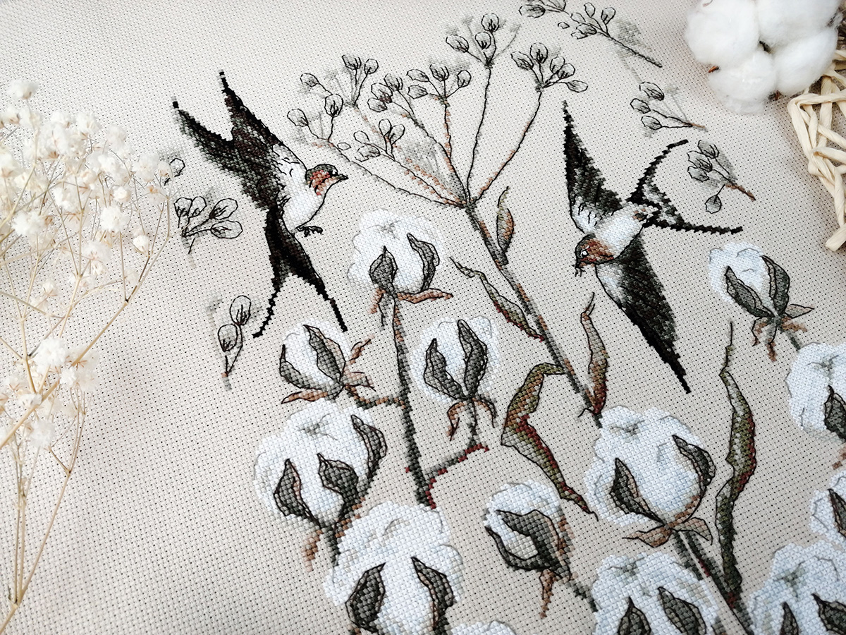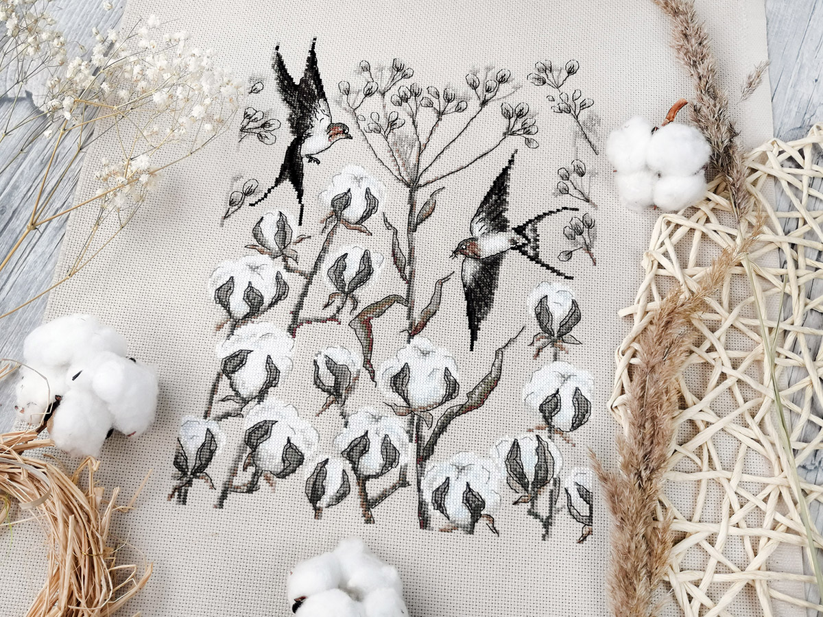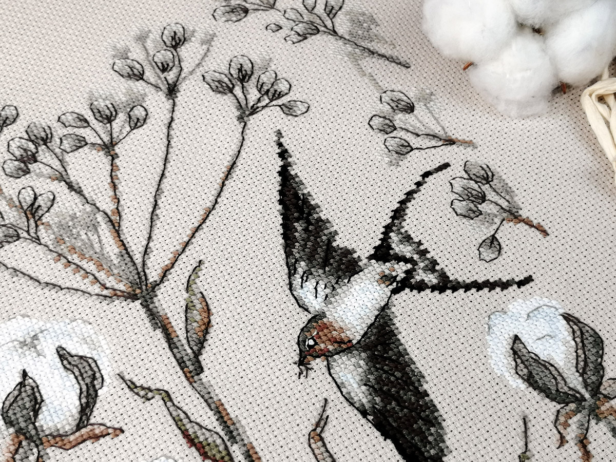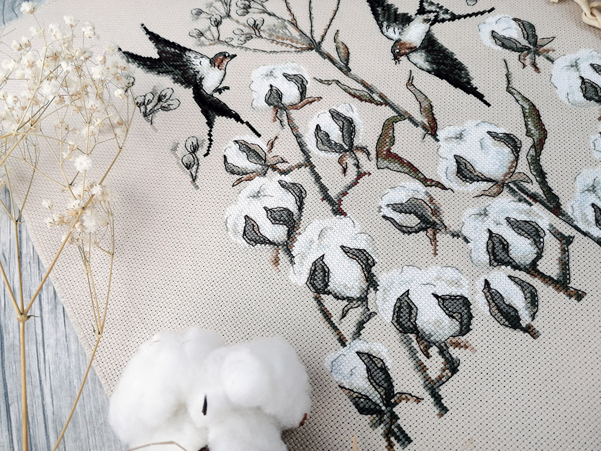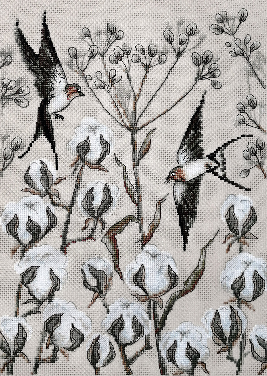 канва Aida 16ct мокка, мулине Finca 13 цв., игла, инструкция, схема комбинированная