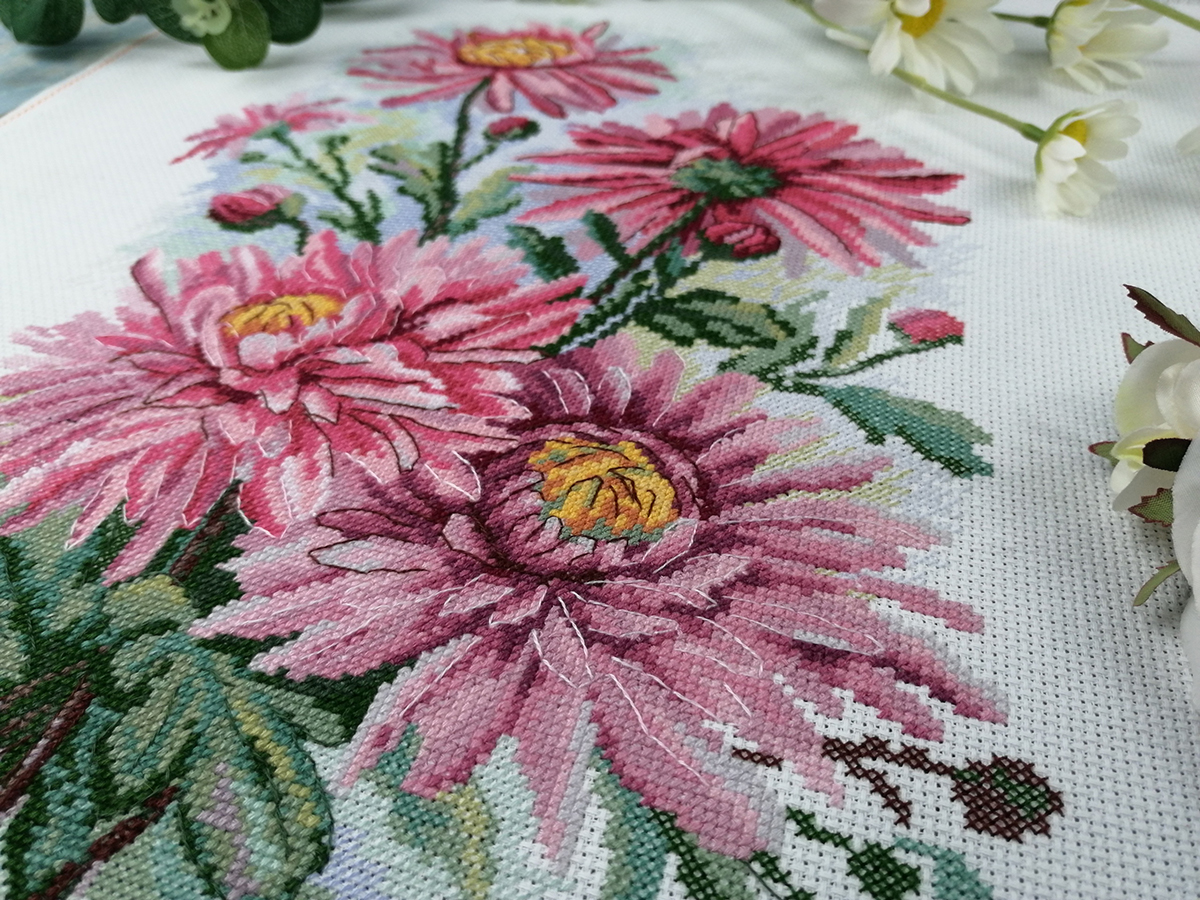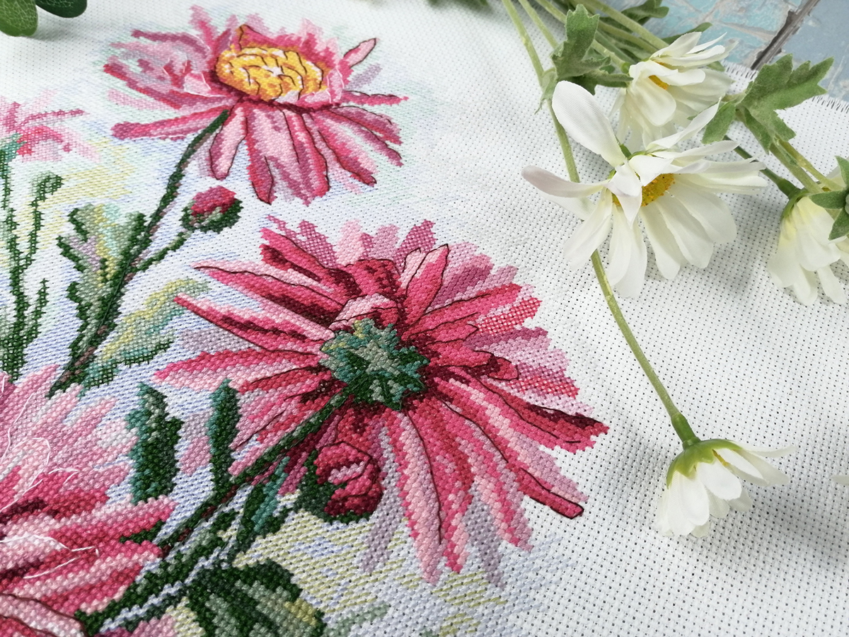 Канва Aida 14 ct молочная, мулине Finca 27 цв., игла, инструкция, схема черно-белая