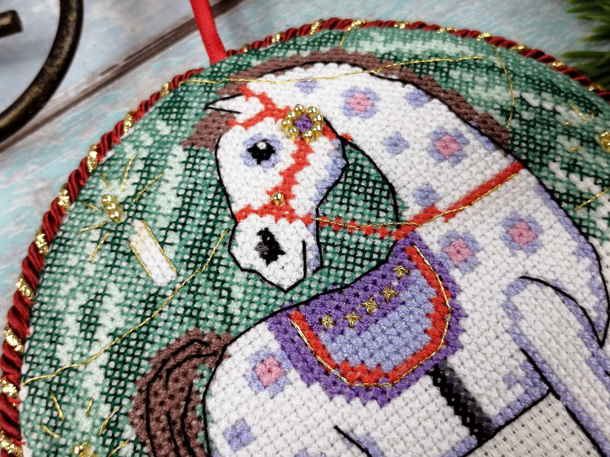 канва Aida 14 ct бежевая и темно-синяя, мулине Finca 17 цв., игла, декоративный шнур, лента, бисер, инструкция, схема черно-белая