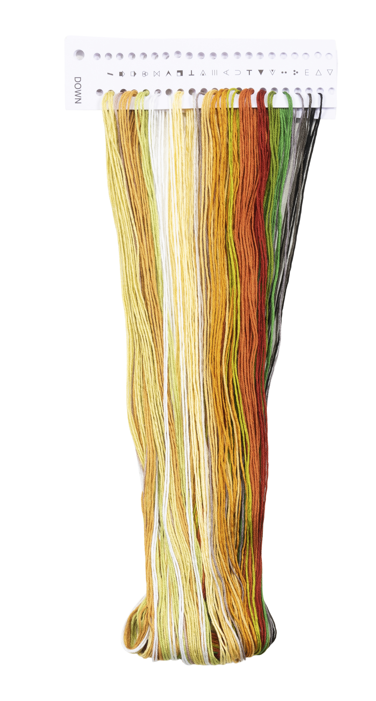 Наборы Dutch Stitch Brothers укомплектованы качественными материалами, такими как мулине DMC из 100% хлопка и разные виды тканей для вышивания производства Zweigart. Наборы обозначенные буквой А после номера содержат в составе канву Aida, если в артикуле есть обозначение .05 – то этот набор укомплектован канвой Aida чёрного цвета. Также в ассортименте есть наборы на 100% льне. Черно-белые схемы тщательно прорабатываются вручную. Используется богатая цветовая палитра ниток, но в ассортименте компании есть и монохромные дизайны. Нитки разобраны по символам и закреплены на органайзере. Стрелка на бумажном органайзере указывает вверх, определяя правильность чтения символов.