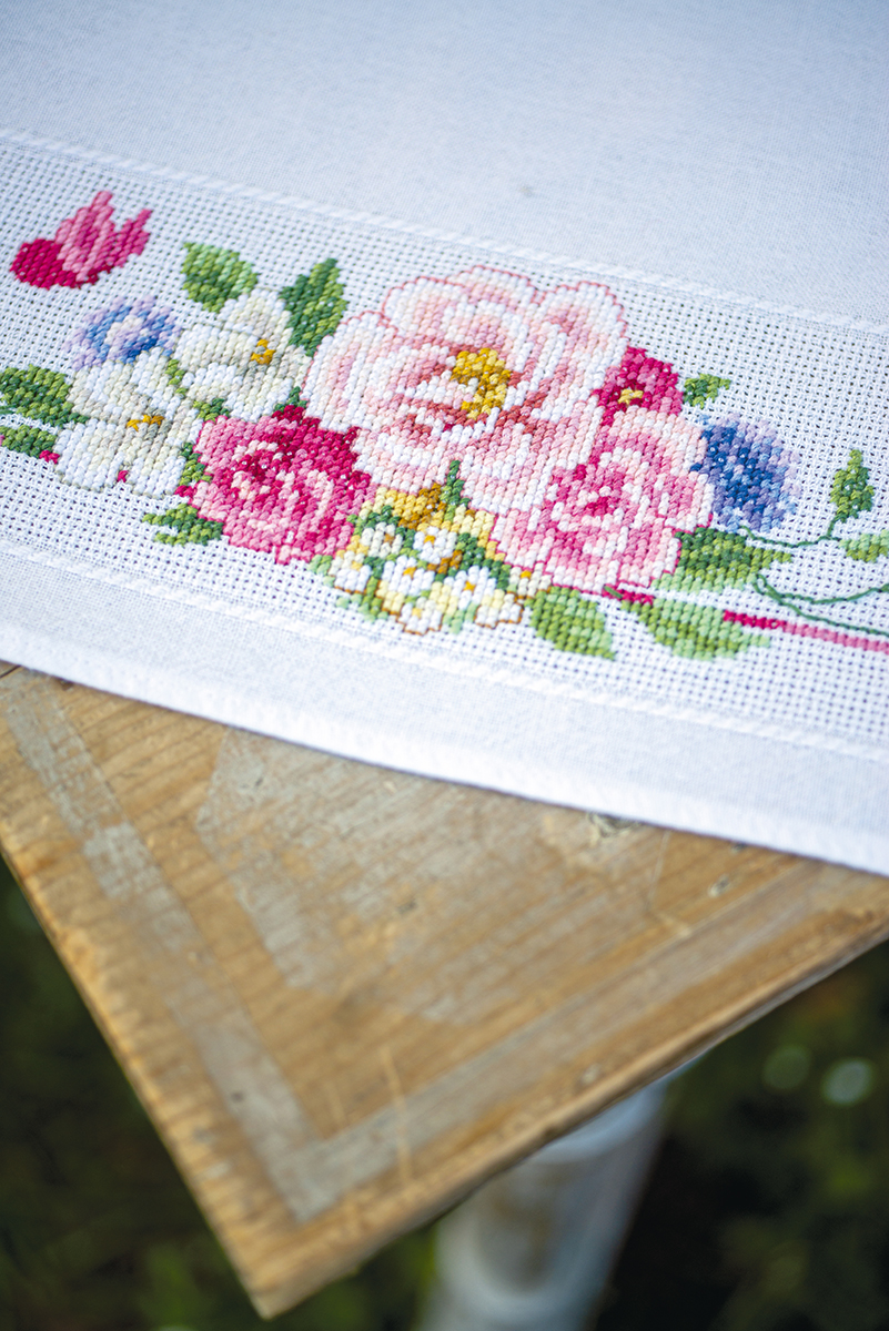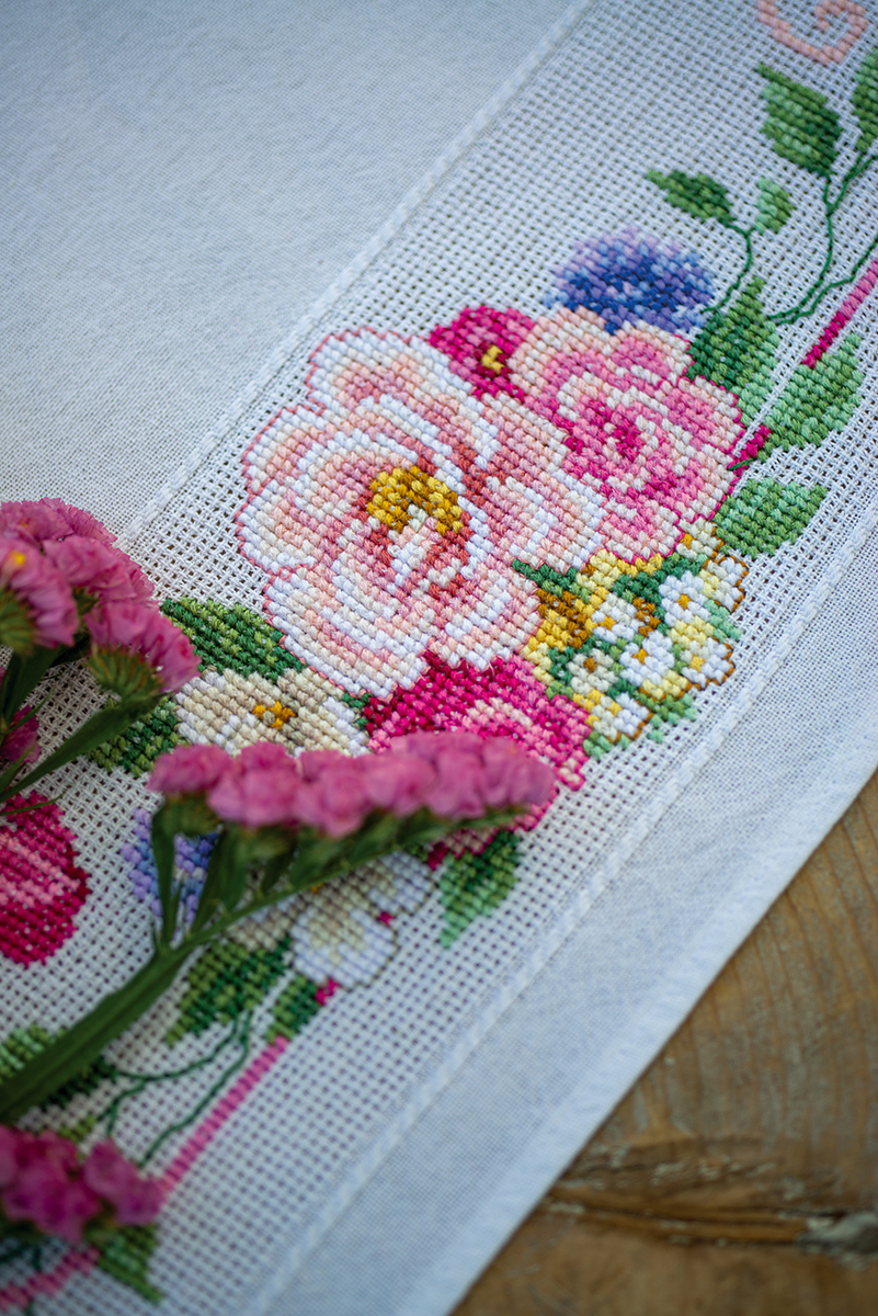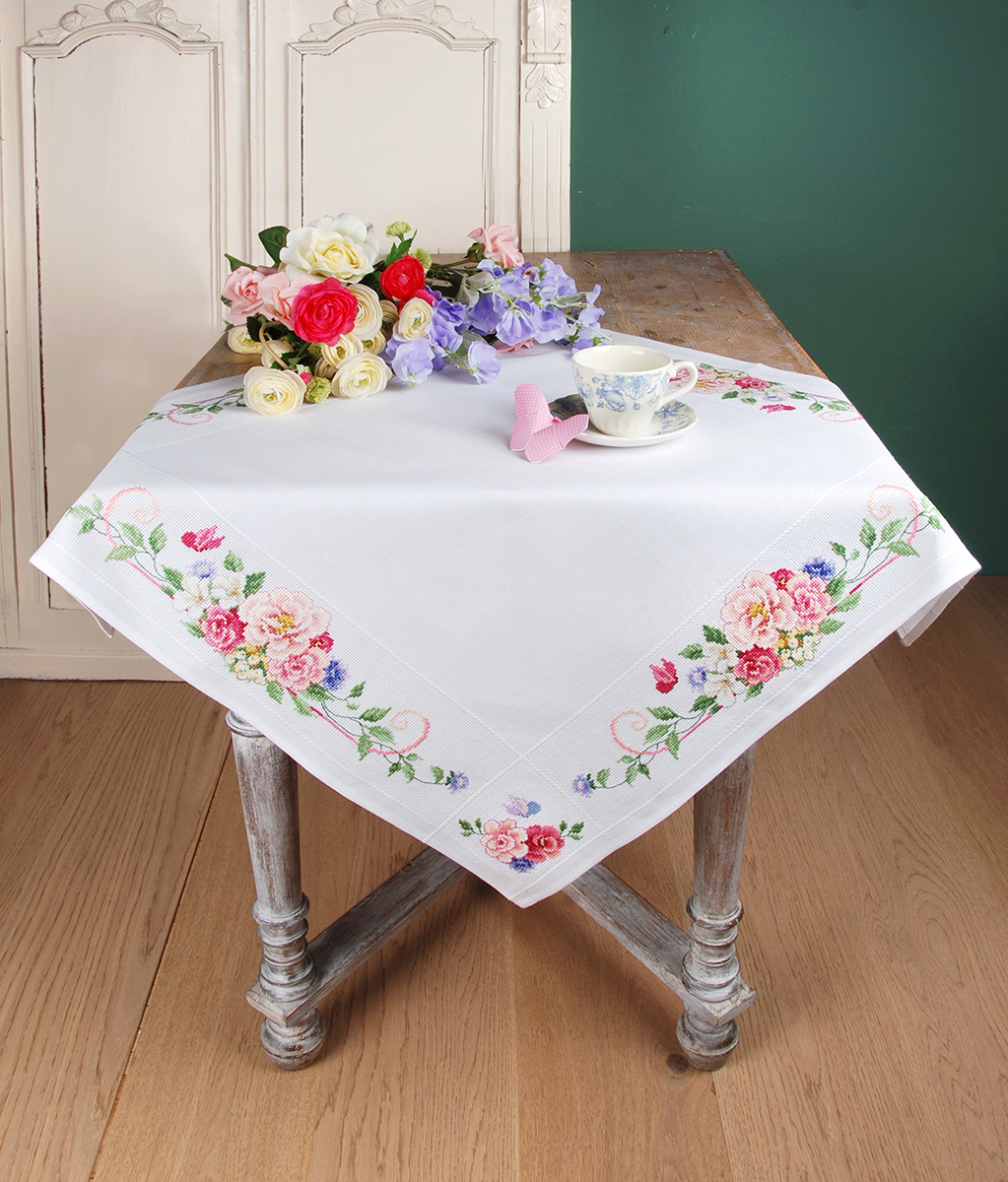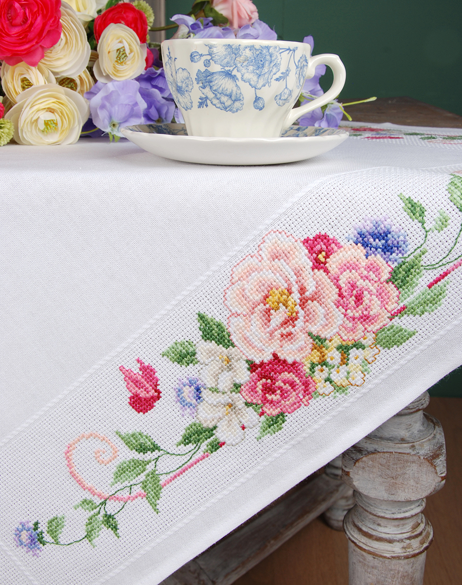 готовая скатерть 100% хлопок с напечатанным рисунком, нити для вышивания, игла, инструкция, схема