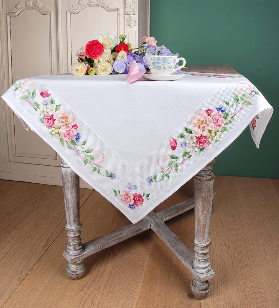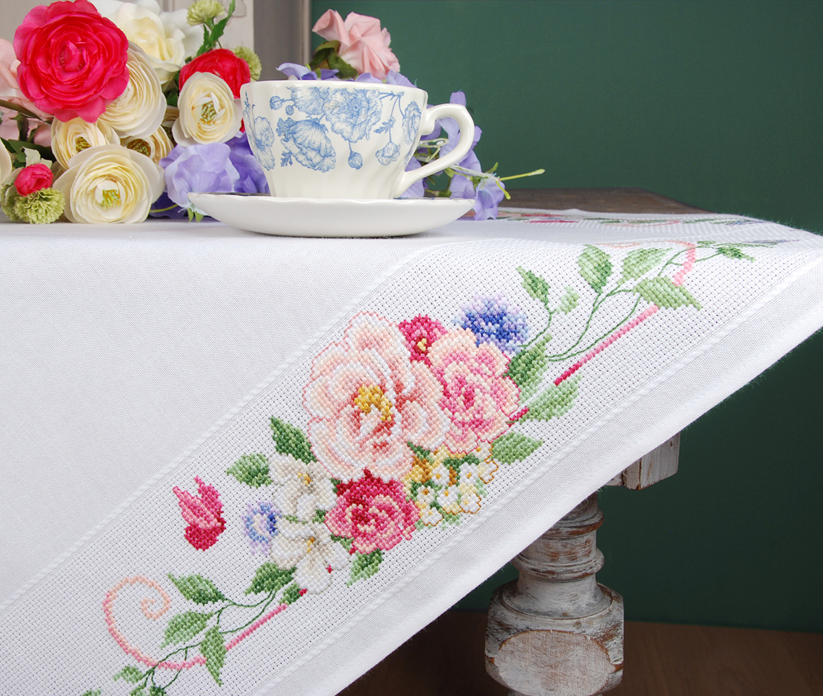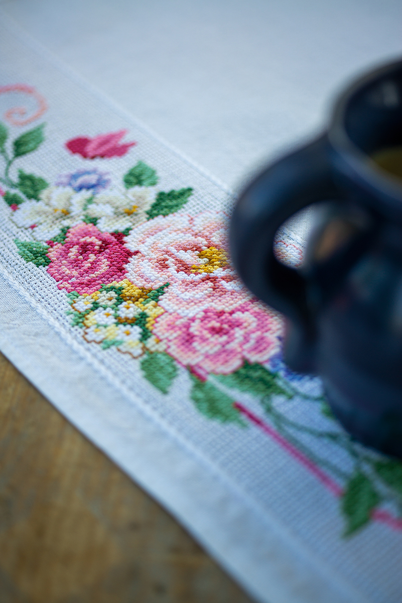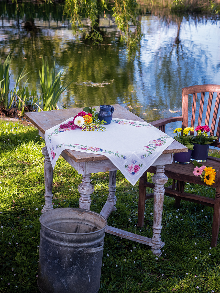 готовая скатерть 100% хлопок с напечатанным рисунком, нити для вышивания, игла, инструкция, схема