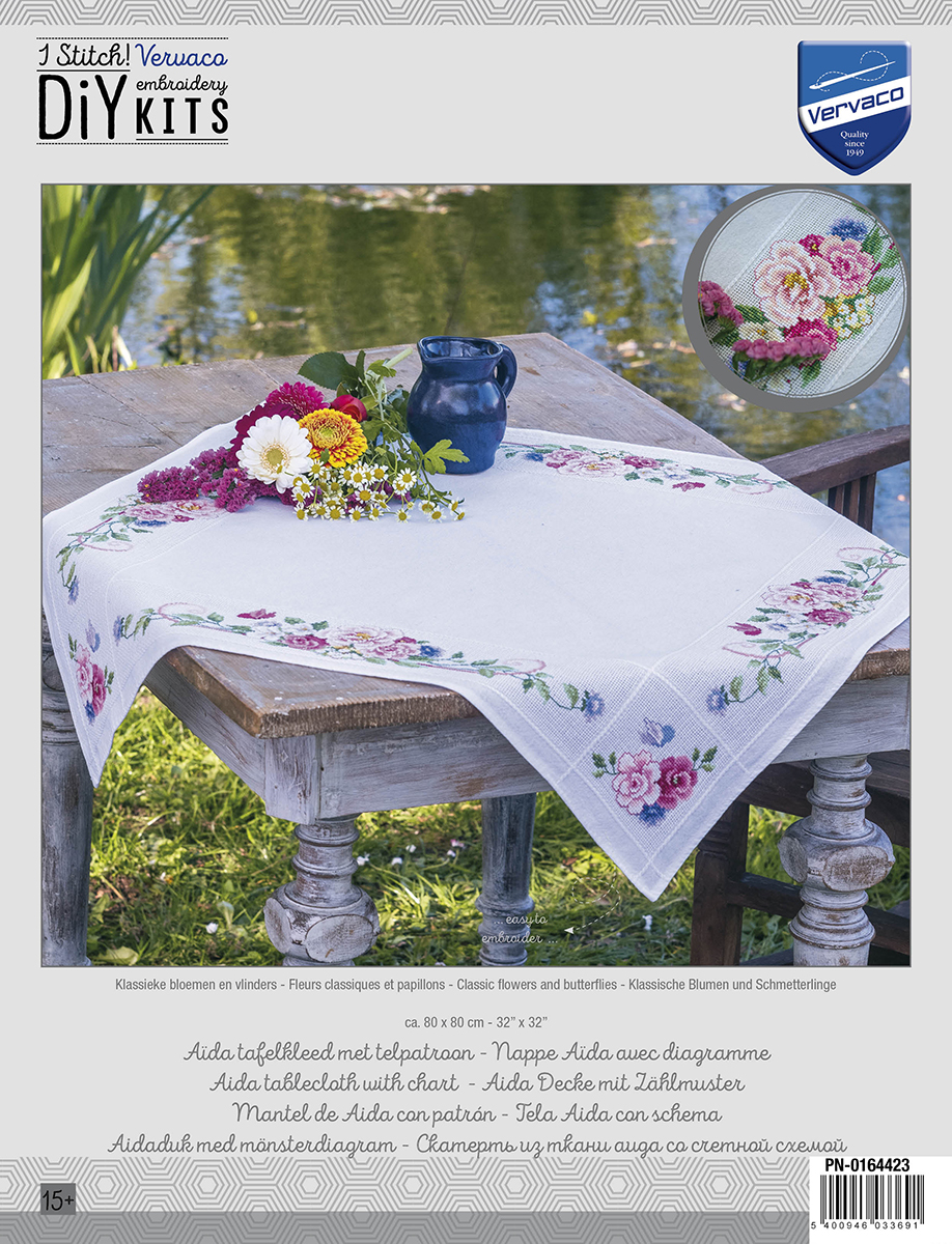 Под маркой VERVACO производятся наборы для вышивания в различных техниках: вышивка счетным и несчетным крестом, нитями мулине и акриловой пряжей, подушки и коврики в ковровой технике, наборы для вышивания скатертей, салфеток, дорожек. Отличительной особенностью наборов VERVACO является то, что они включают очень подробную инструкцию на нескольких языках, в том числе и на русском! Схема для вышивки символьная, черно-белая. В наборы для вышивания в технике «счетный крест» входят канва ZWEIGART (Германия) «Aida» или «равномерка», мулине DMC (Франция).