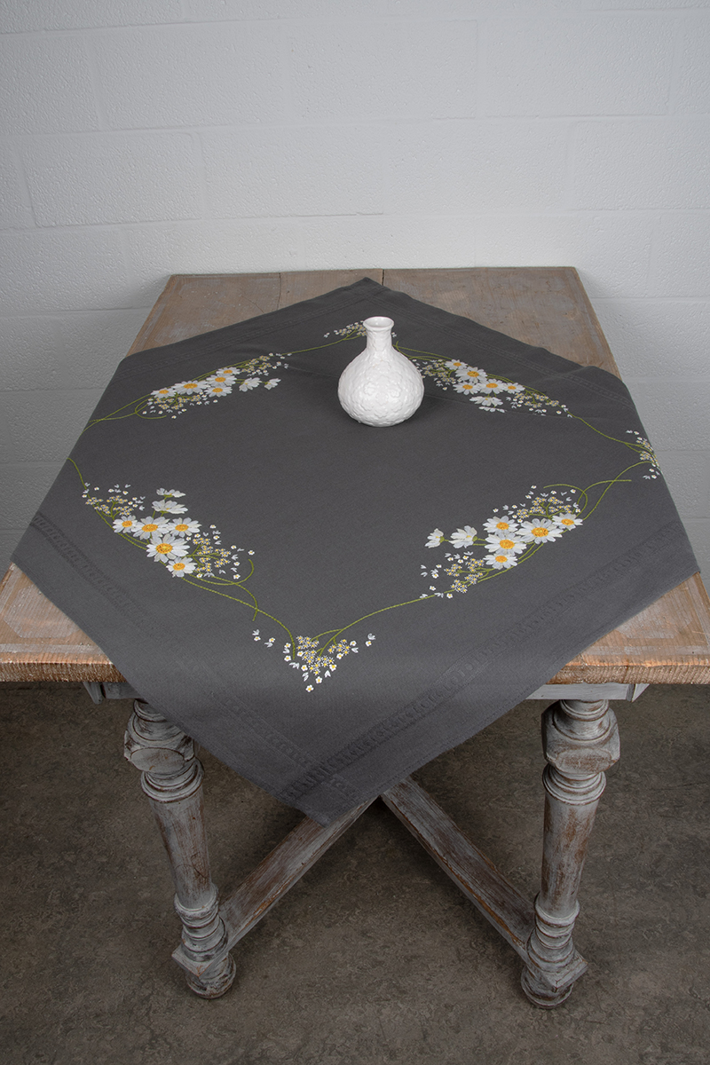 готовая скатерть 100% хлопок с напечатанным рисунком, нити для вышивания, игла, инструкция, схема