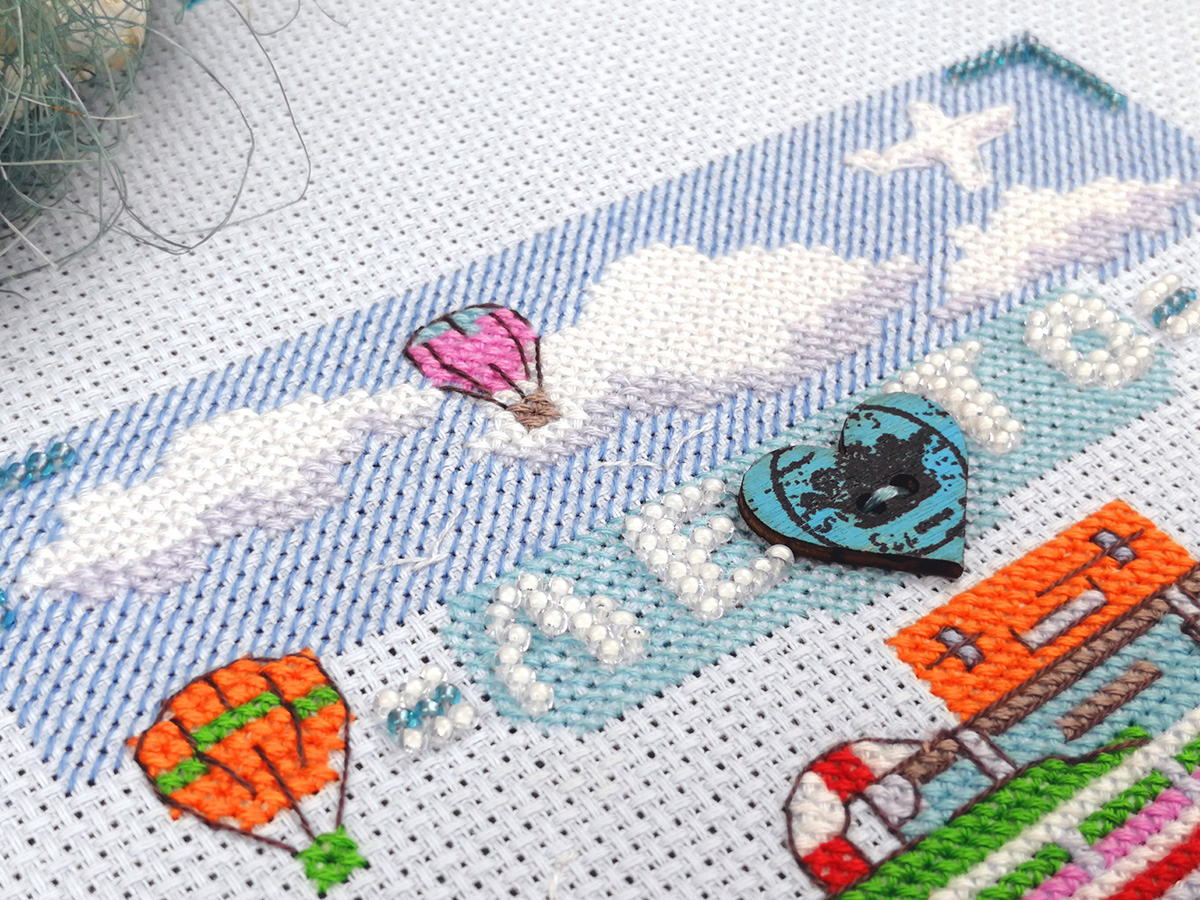 счетный крест + частичная вышивка бисером