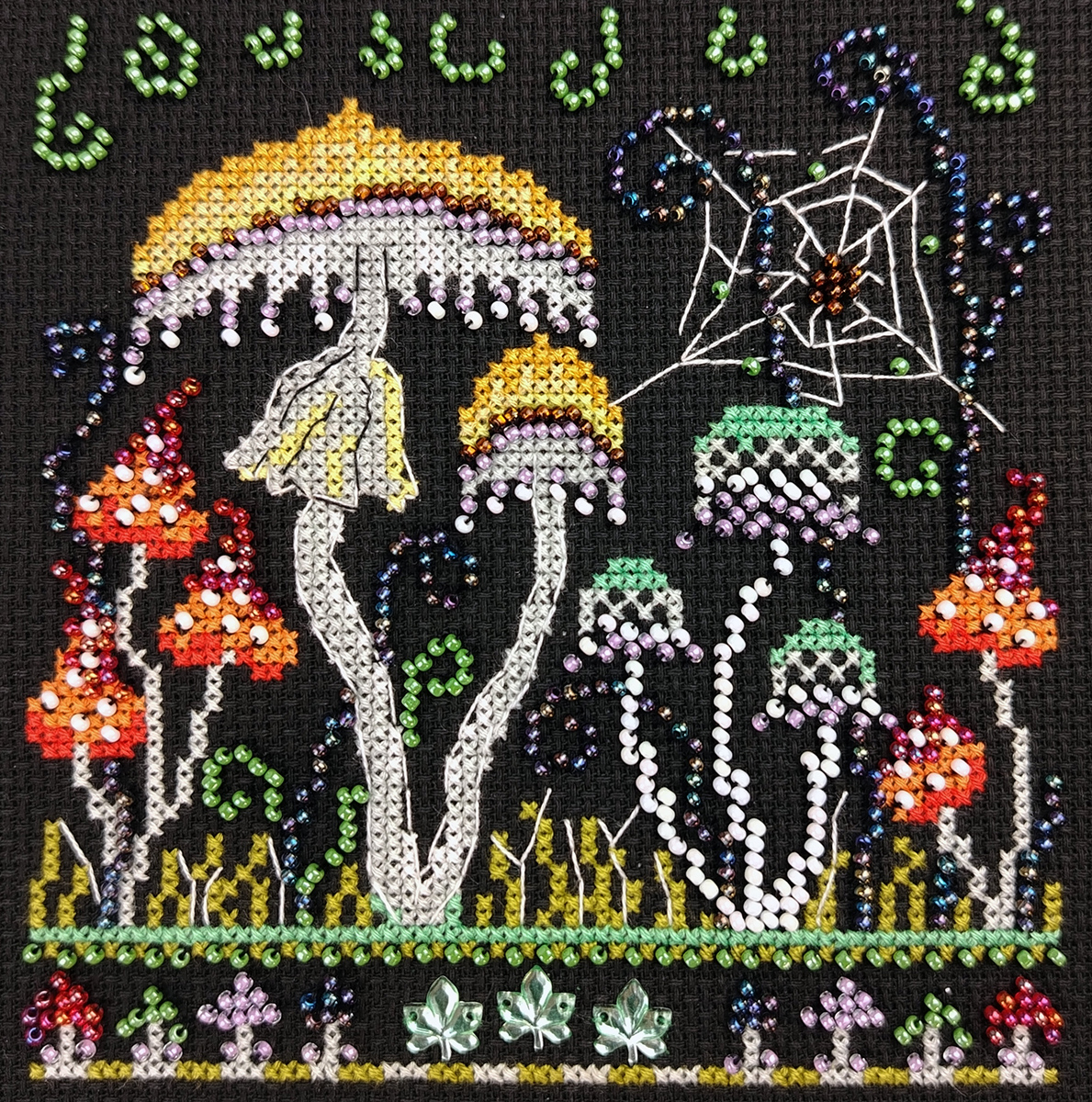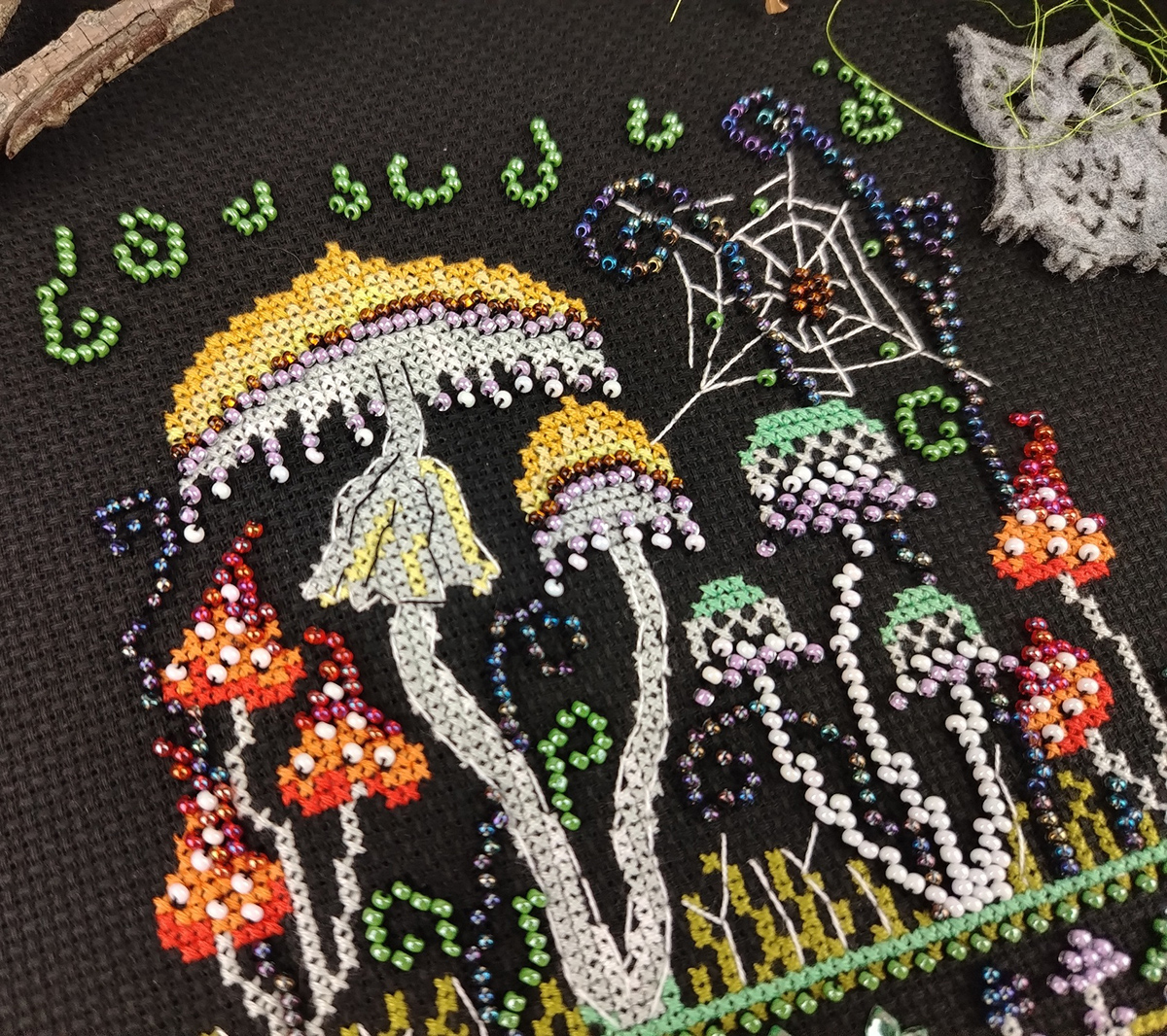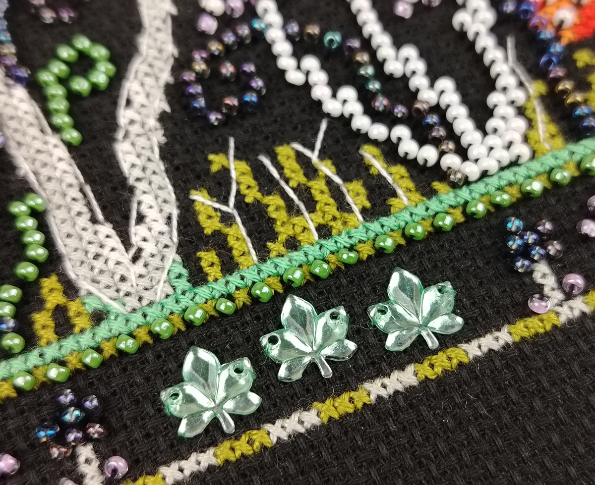 счетный крест + частичная вышивка бисером
