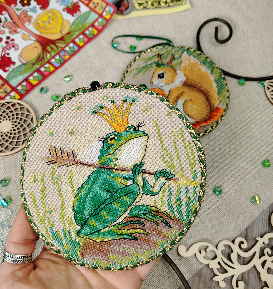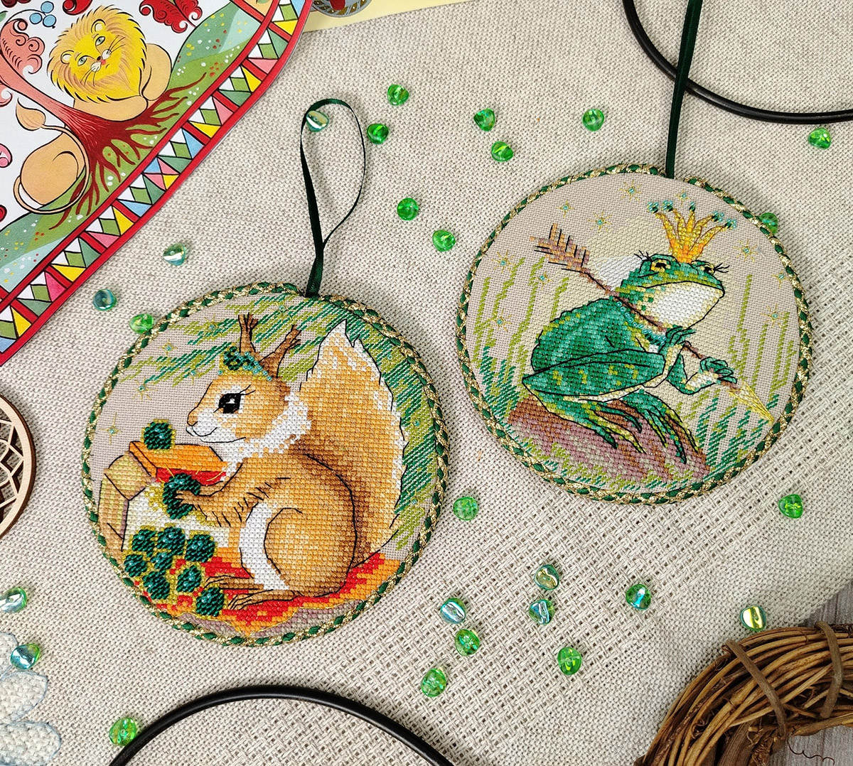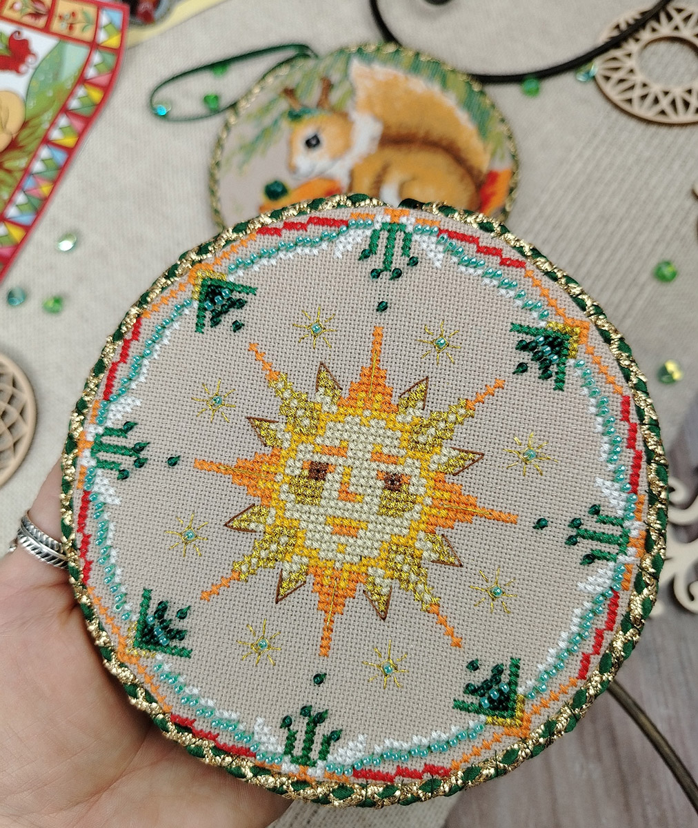 канва Linda 27 ct темно-бежевая, мулине Finca 20 цв., шнур, тесьма, бисер, игла, инструкция, схема комбинированная