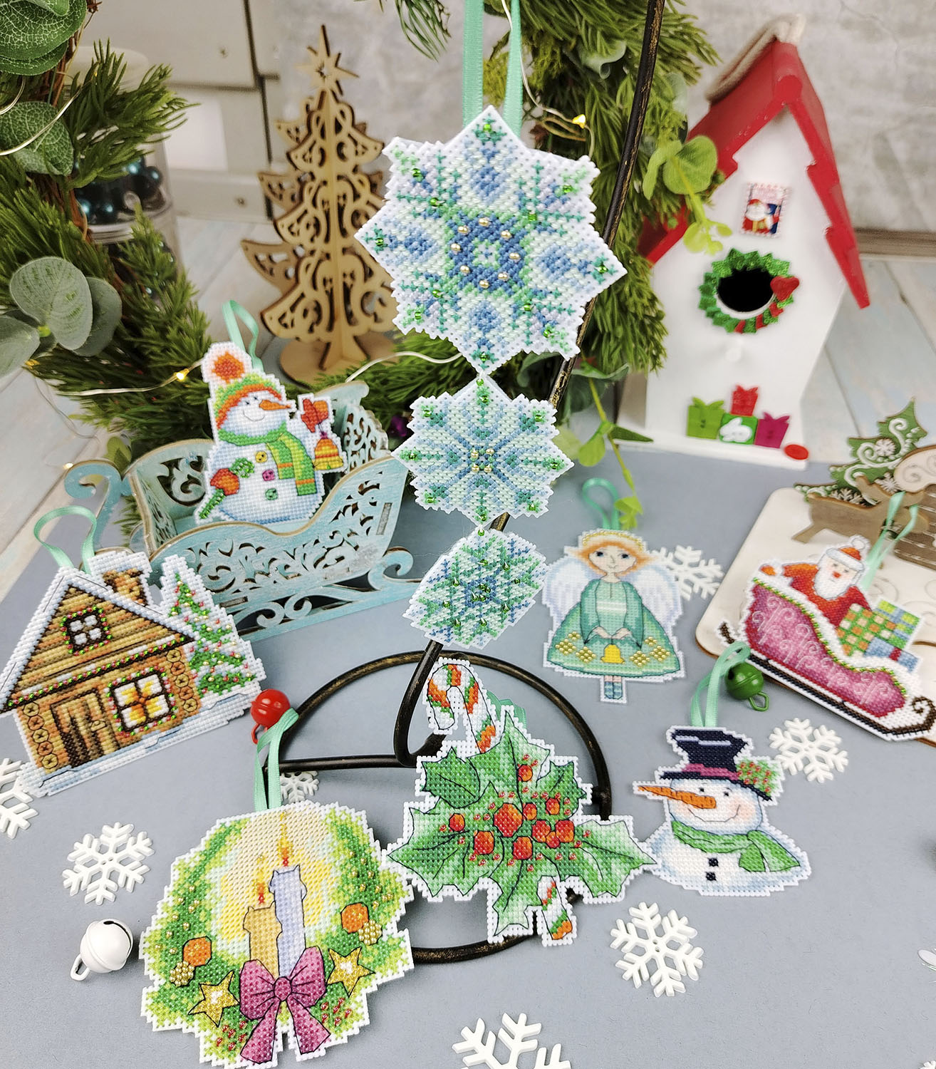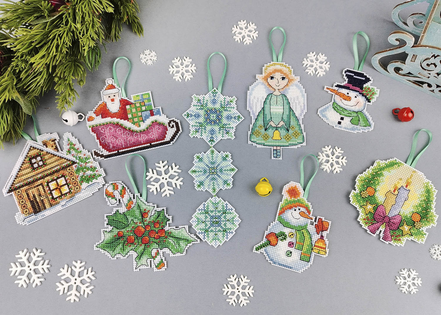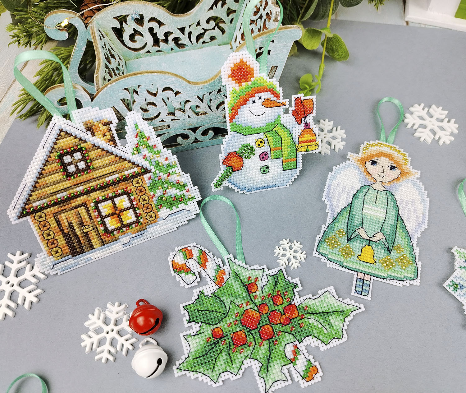 Канва пластиковая белая, мулине Finca 33 цв., тесьма, бисер, игла, инструкция, схема черно-белая. Размер готовых игрушек:10х9 см 17х7 см, 11х7 см