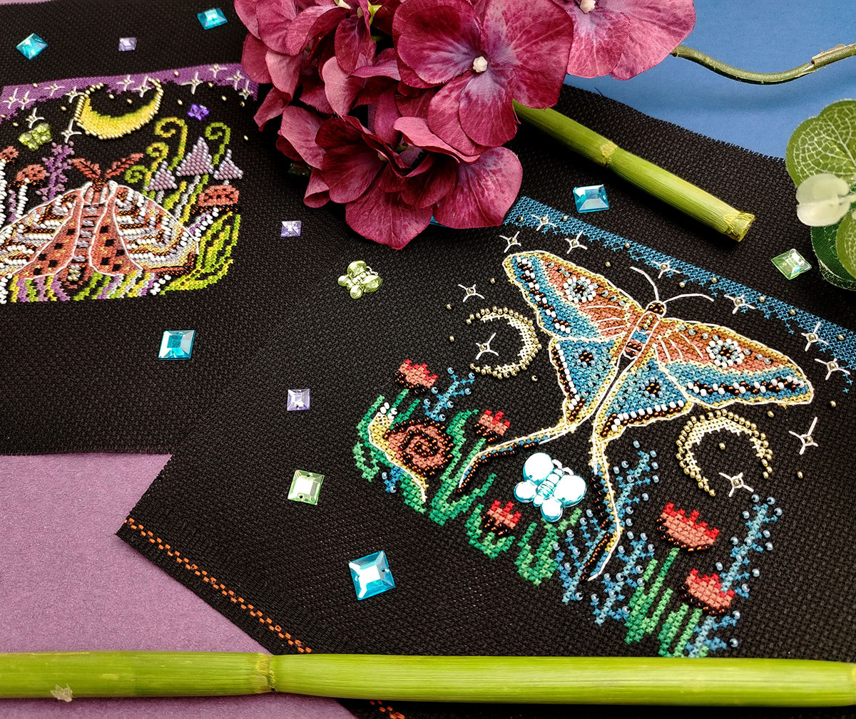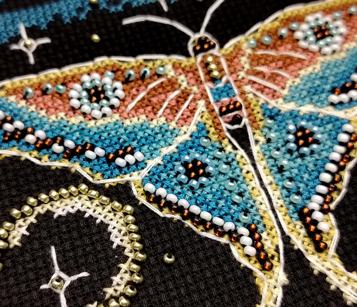 счетный крест + частичная вышивка бисером