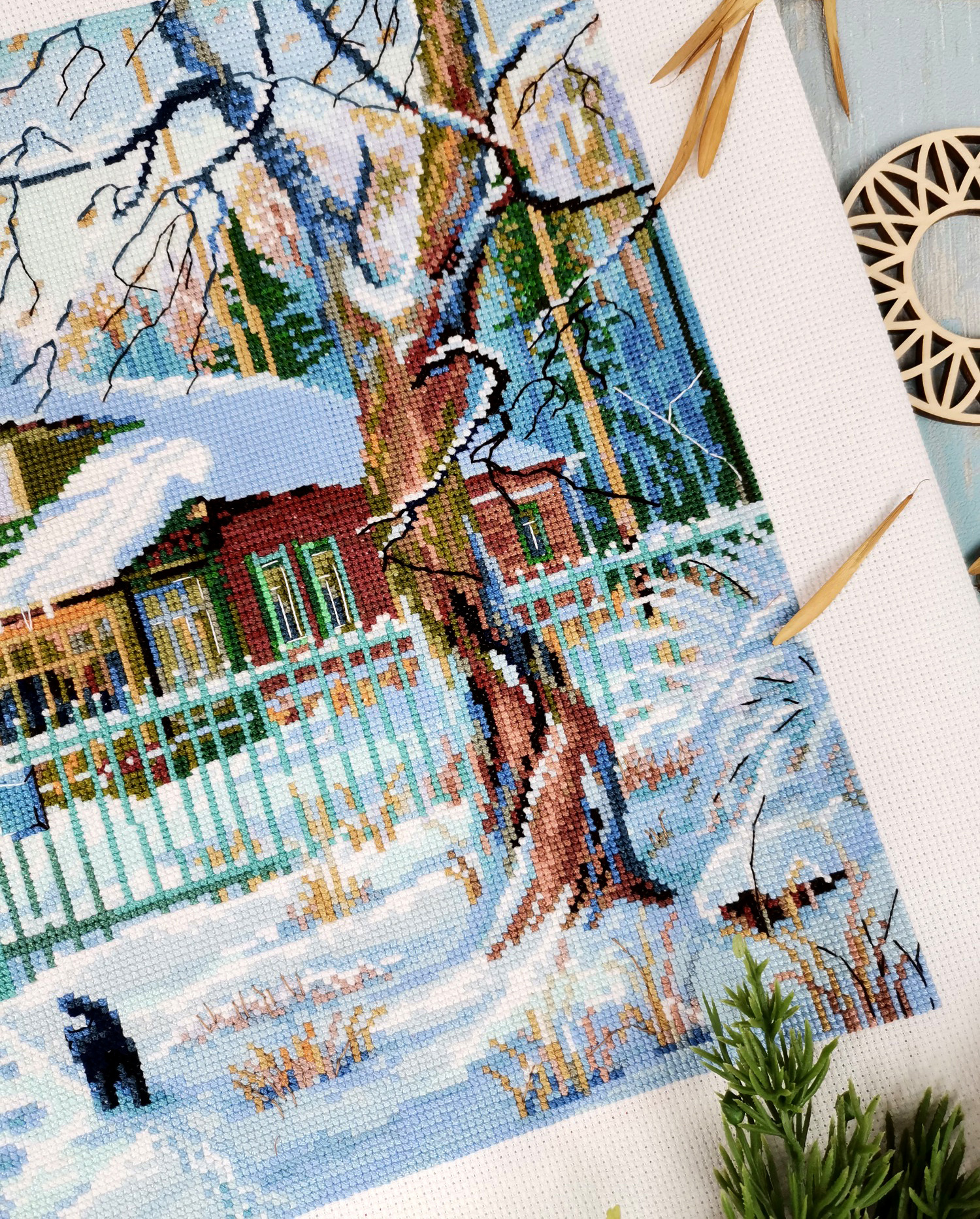 канва Aida 16 ct молочная, мулине Finca 46 цв., игла, инструкция, схема комбинированная