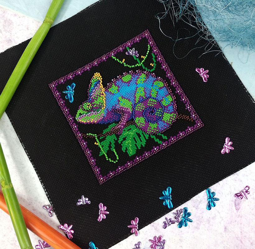 счетный крест + частичная вышивка бисером