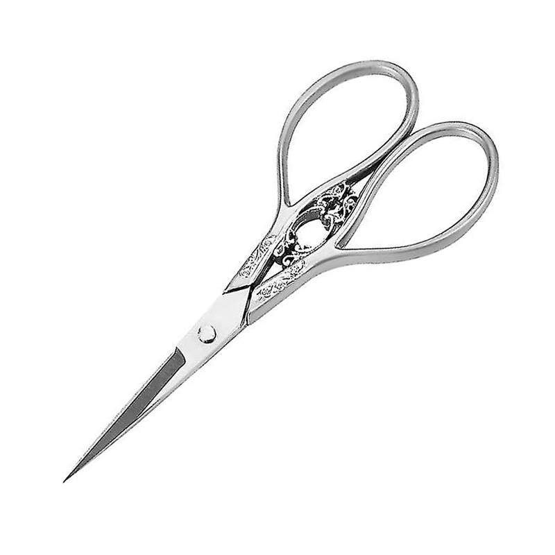 Ножницы цельнометаллические винтажного дизайна. Цвет матовое себро с золотистым декором. Предназначены для подрезки нитей в процессе работы с вышивкой, имеют заостренные тонкие кончики. Длина режущей части 30 мм.