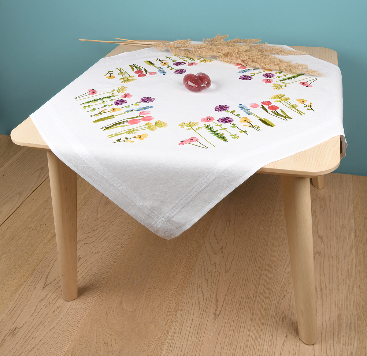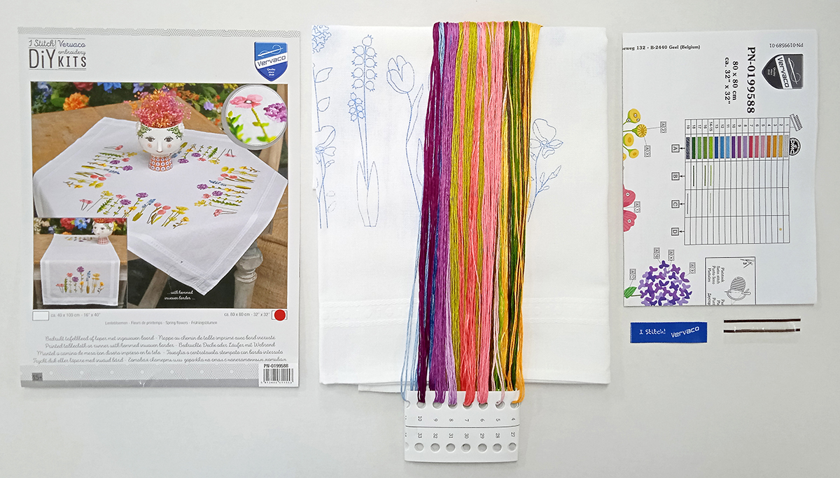 готовая скатерть 100% хлопок с напечатанным рисунком, нити для вышивания, игла, инструкция, схема