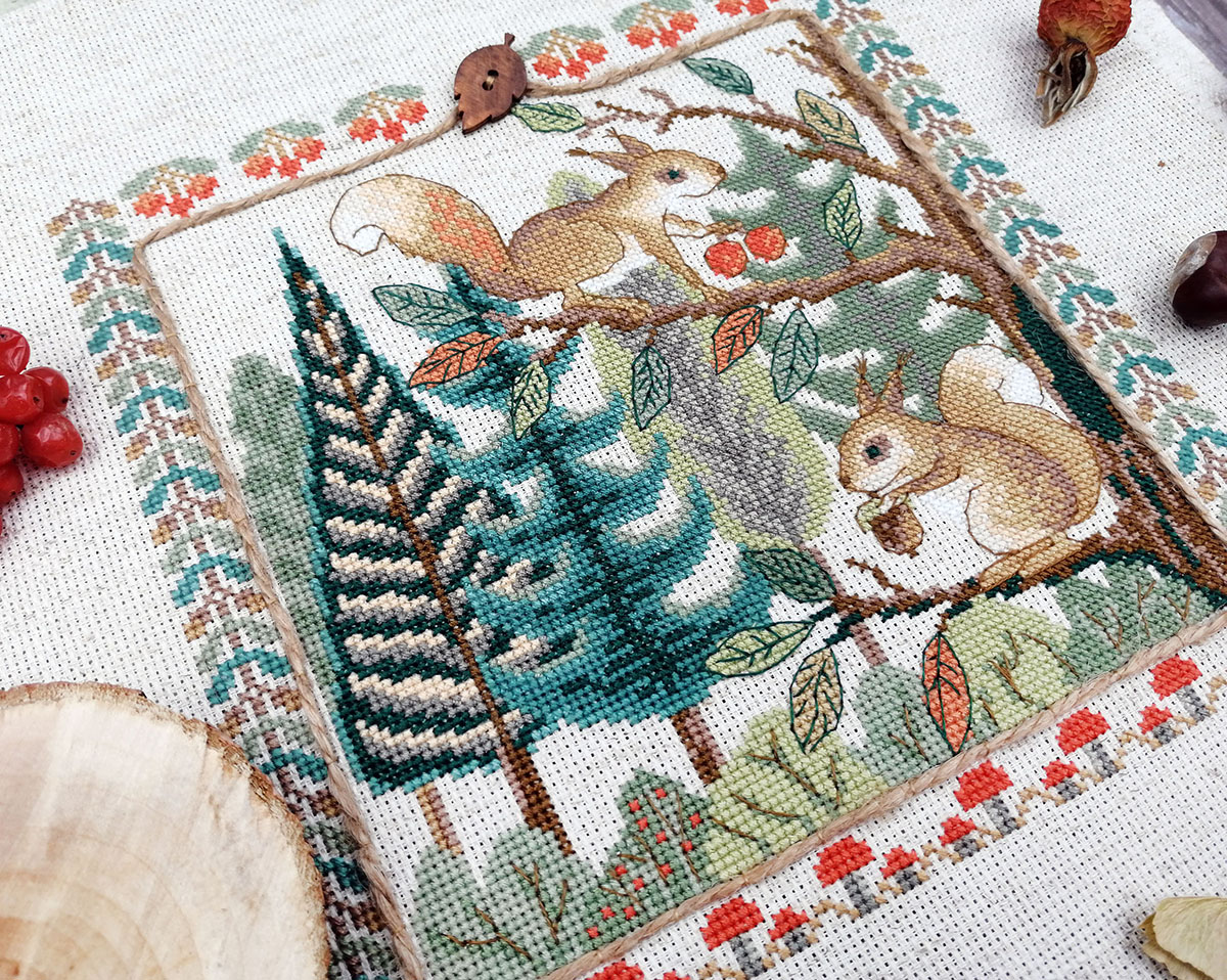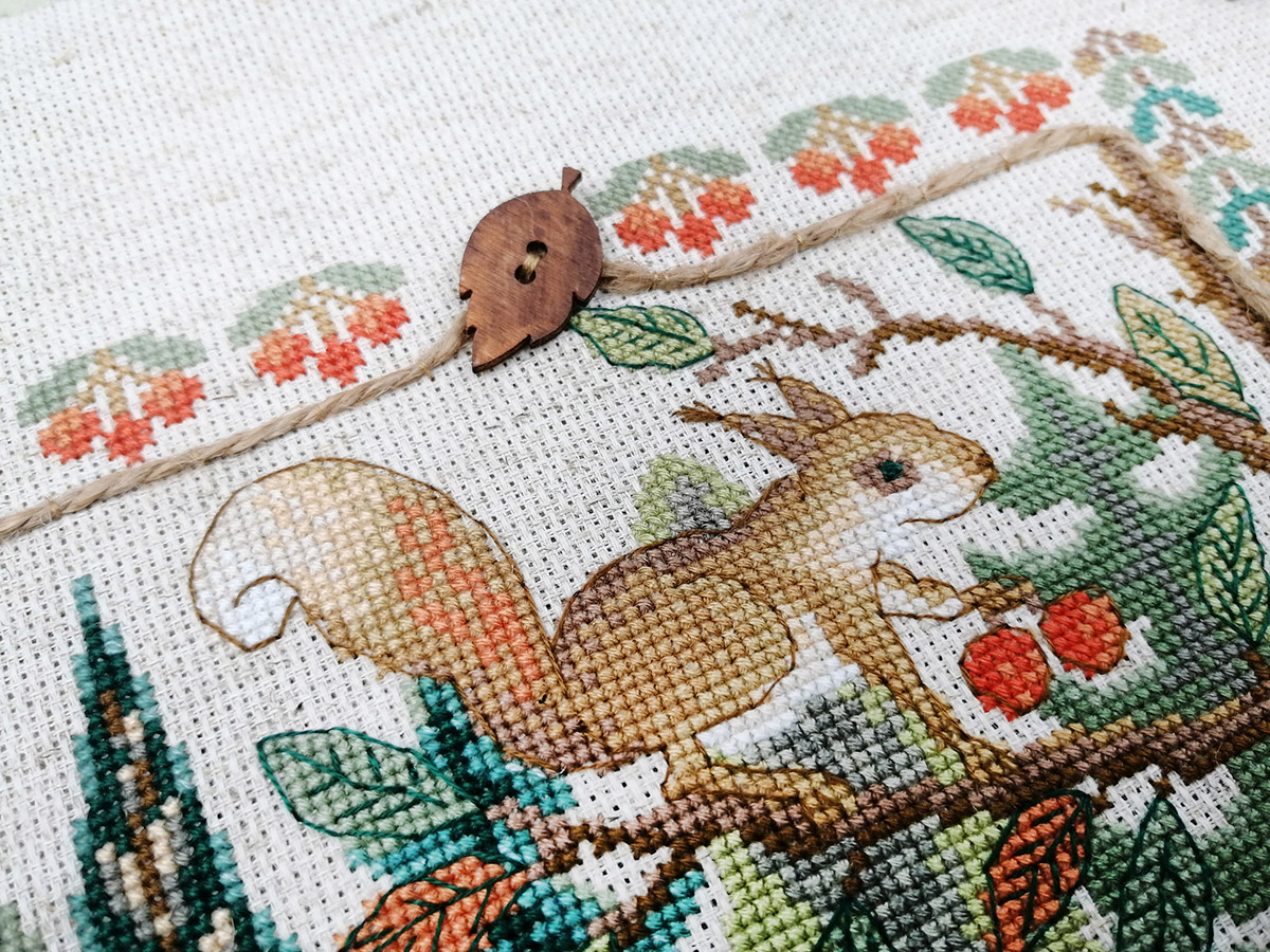 В каждом наборе: канва Аида 16 рустико под лен и декоративные элементы: деревянная пуговица и бечевка.