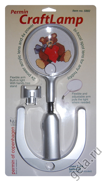 Высокое качество, диаметр линзы (11 см), увеличение в 2-х и 4-х кратное увеличение. Регулируемая гнущаяся ручка позволяет устанавливать положение линзы в нужной позиции. Легко устанавливается вертикально - Ваши руки всегда свободны. Встроенная лампа на гнущейся ручке обеспечивает подсветку в нужном месте. 2 батарейки (АА) в комплект не входят. Не наклоняйте лупу более чем на 45° от среднего положения, чтобы избежать потрескиваний на гибкой ручке и внутренних электропроводах. Идеальна для хобби, вышивания, вязания, рукоделия, чтения, коллекционирования, ручной работы.
