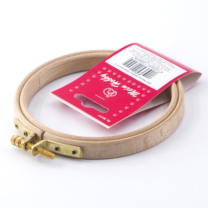 Пяльцы изготовлены из 3-х слойного клееного полированного бруса (бука), имеют латунный винт для надежного закрепления ткани в пяльцах.