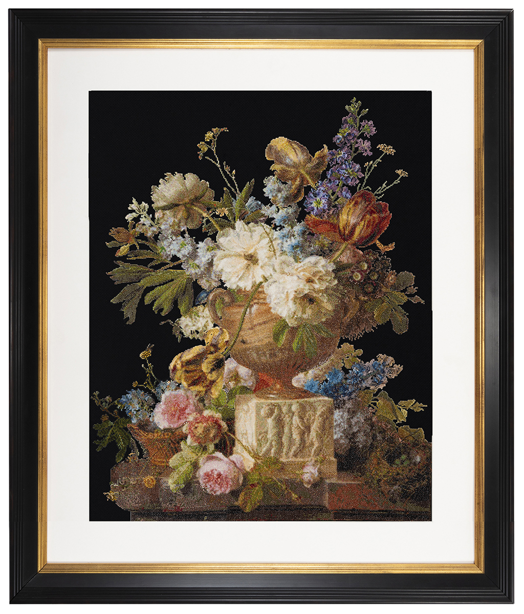 Жерар ван Спаендонк из Тилбурга сделал свою карьеру в Париже, где он вырос, чтобы стать художником по ботаники у короля Франции и занял высоко выдающееся положение. Его цветочные натюрморты считались лучшими в свое время. Выставленная на Парижском салоне в 1783 году, эта картина получила высокую оценку за реалистичные цветы, насекомых и предметы. Окно мастерской художника отражается в алебастровой вазе.