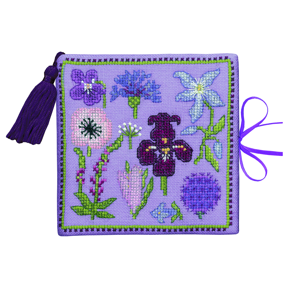 канва лен 32 ct сиреневый, нитки DMC, игла, схема, инструкция, декоративная кисточка, ленточка