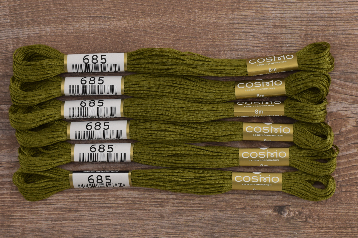 Легендарное мулине Cosmo выпускается с 1950 года в Японии. Сегодня Cosmo прочно удерживает первое место в общем объеме продаж одного из самых взыскательных и требовательных рынков рукоделия в мире - японского рынка. Благодаря эксклюзивной системе окраски нитей был достигнут удивительный уровень сохранения цвета и оттенков, включая самые нежные цвета. Качество нитей не останавливается на достигнутом, инженеры постоянно внедряют новые технологии для улучшения мулине. Мулине Cosmo обладает непревзойденной мягкостью и легкостью в работе. Карта цветов мулине Cosmo представлена 501 однотонным оттенком хлопковых нитей. Количество в упаковке 6 пасм.