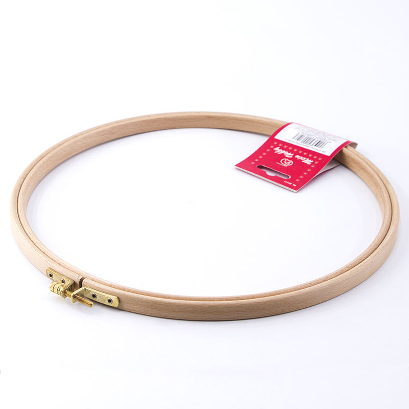 Пяльцы изготовлены из 3-х слойного клееного полированного бруса (бука), имеют латунный винт для надежного закрепления ткани в пяльцах.