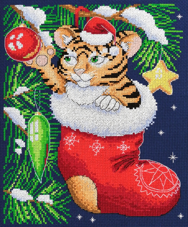 канва Aida 14 ct темно синяя, мулине Finca 16 цв., игла, инструкция, схема
